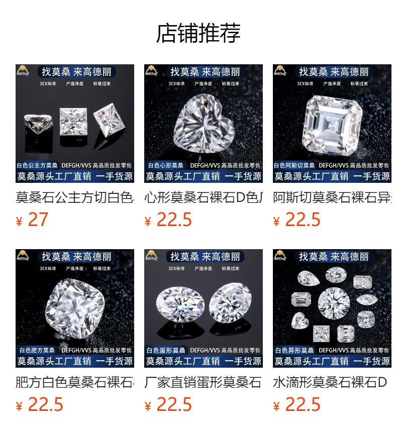 カラー莫桑円形八心八矢切工莫桑石裸石0.5-3カラット源メーカー現物卸売り