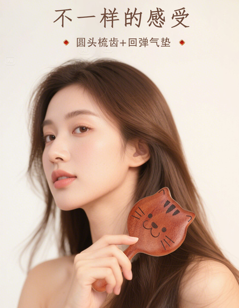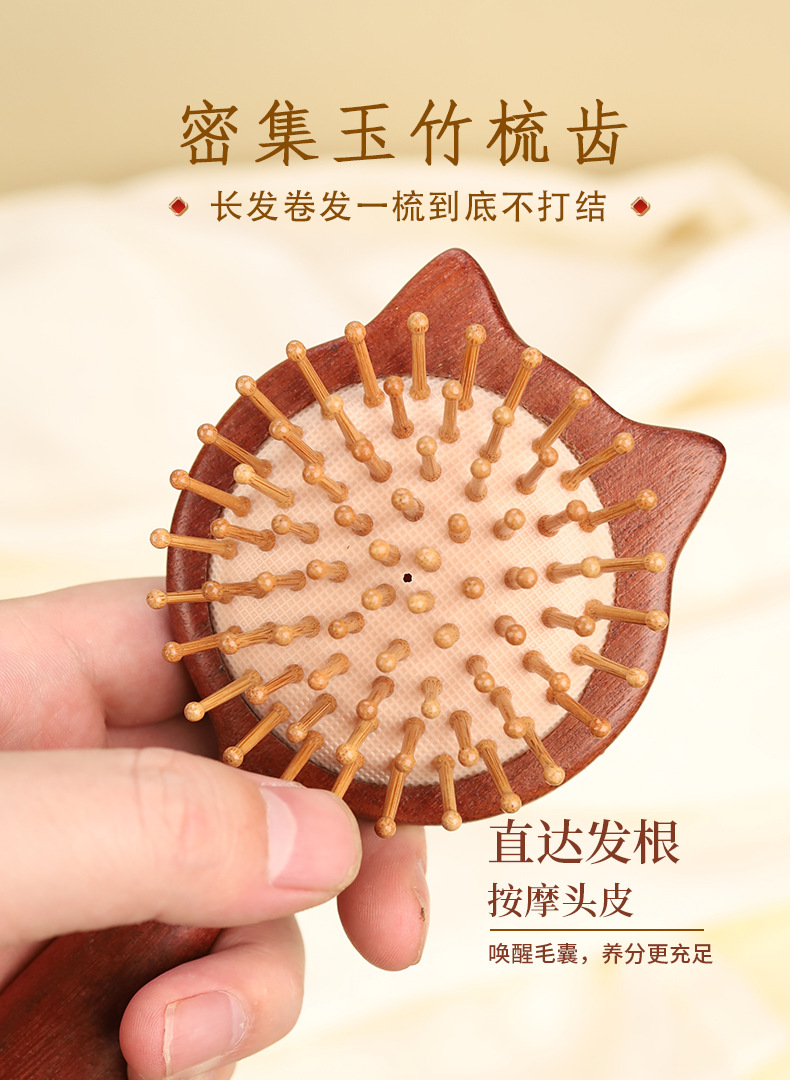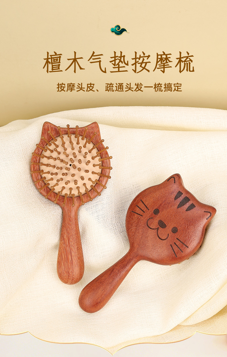 檀木气垫梳可爱便携气囊按摩梳头部头皮经络梳养发顺发长发卷发梳