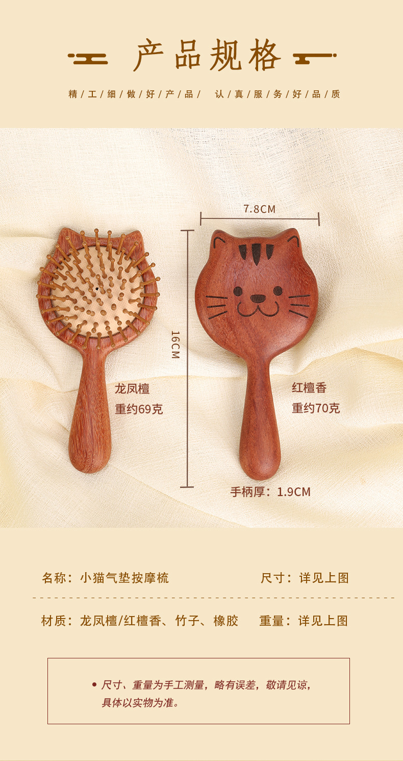 颜色 檀木喵咪气囊梳-一把,龙凤檀木喵咪经络梳-一把,檀木喵咪气囊梳-2把,龙凤檀木喵咪经络梳-2把