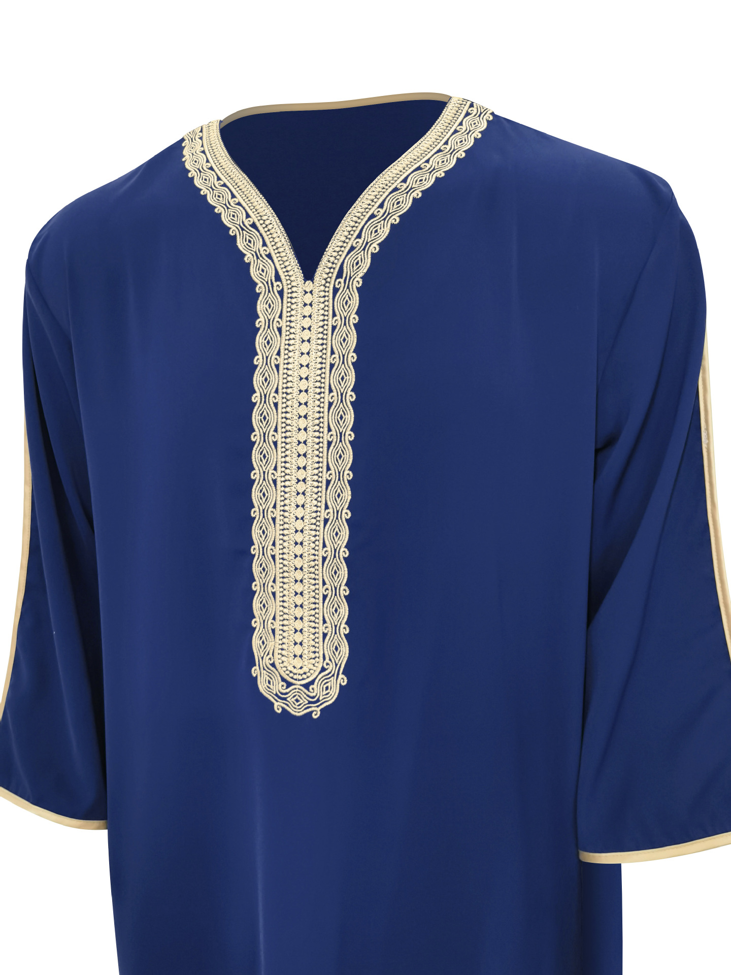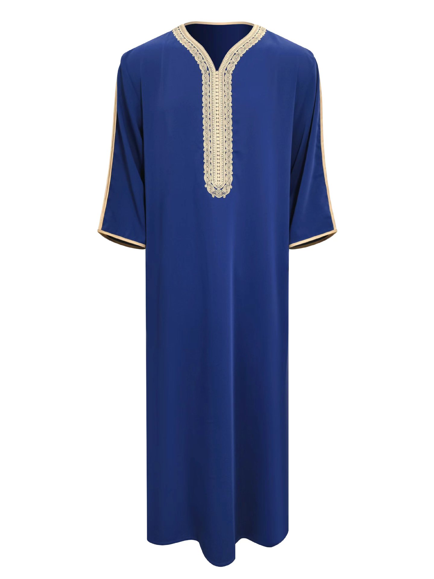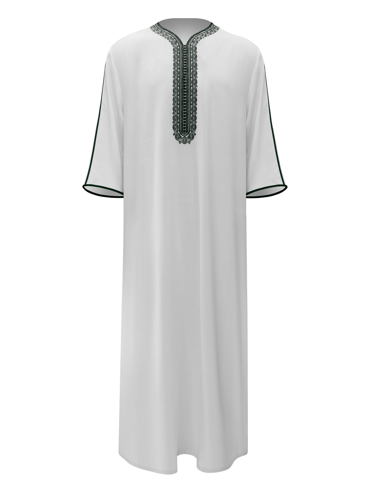2025新款中东跨境外贸穆斯林中袖3D印花民族风摩洛哥男士长袍 POD