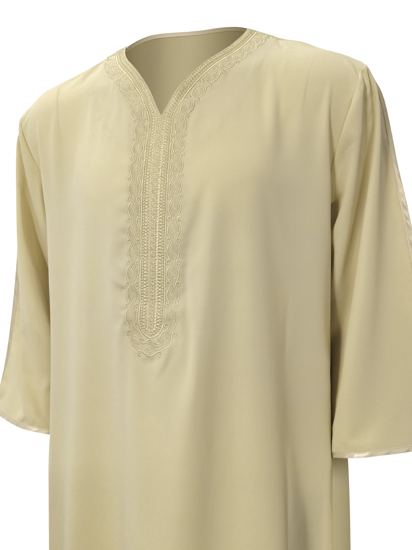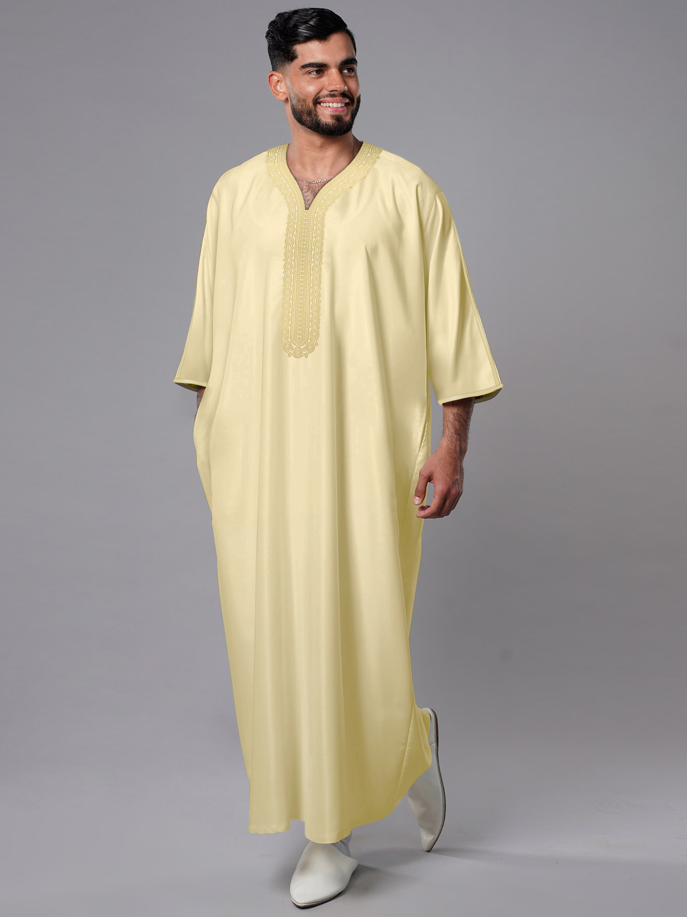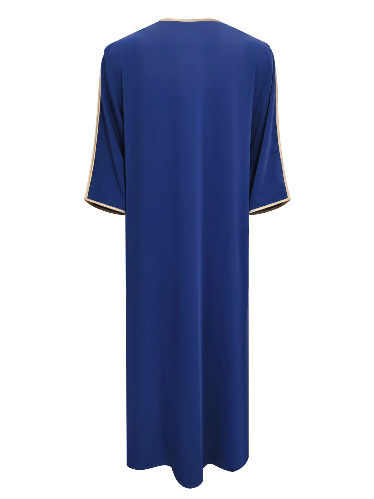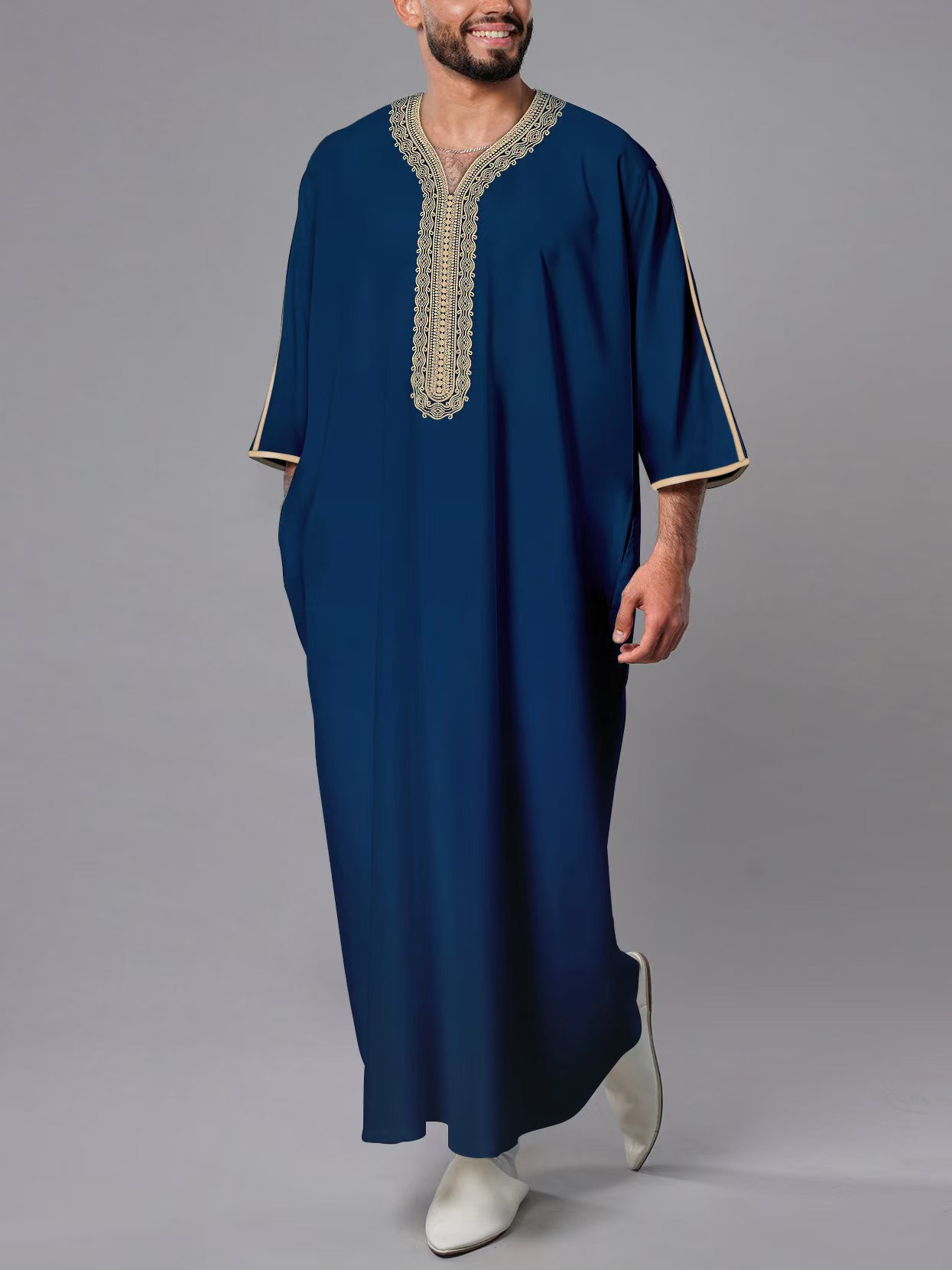 2025新款中东跨境外贸穆斯林中袖3D印花民族风摩洛哥男士长袍 POD