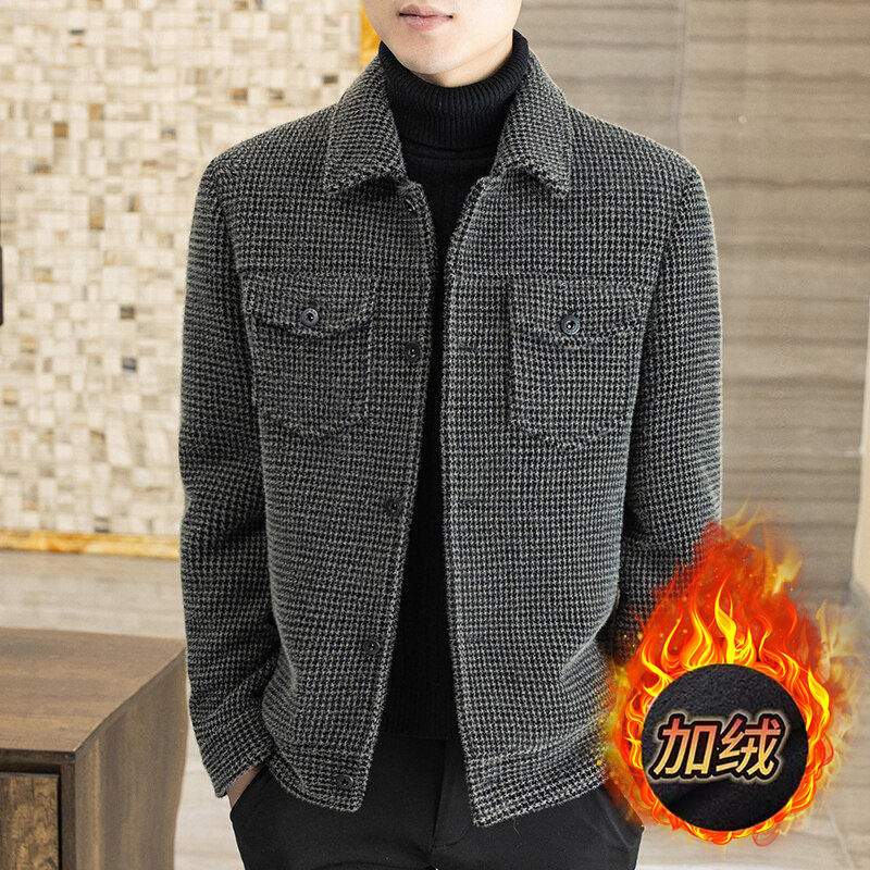 秋冬季高档毛呢加绒加厚中年夹克外套男士立领新款休闲百搭呢大衣