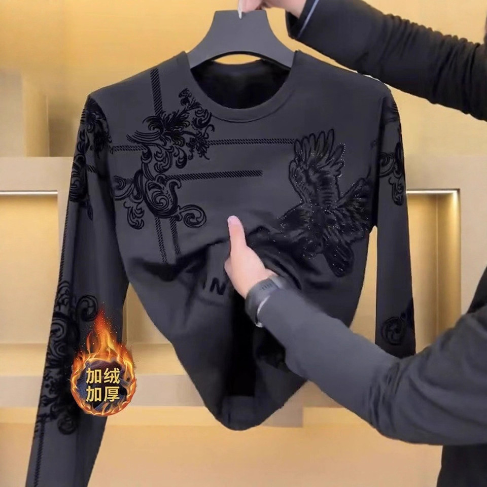 跨境批发男士卫衣长袖t恤秋冬内搭一体绒加绒休闲保暖打底衫上衣