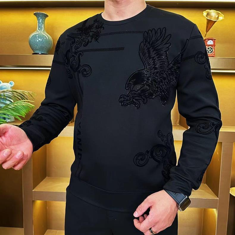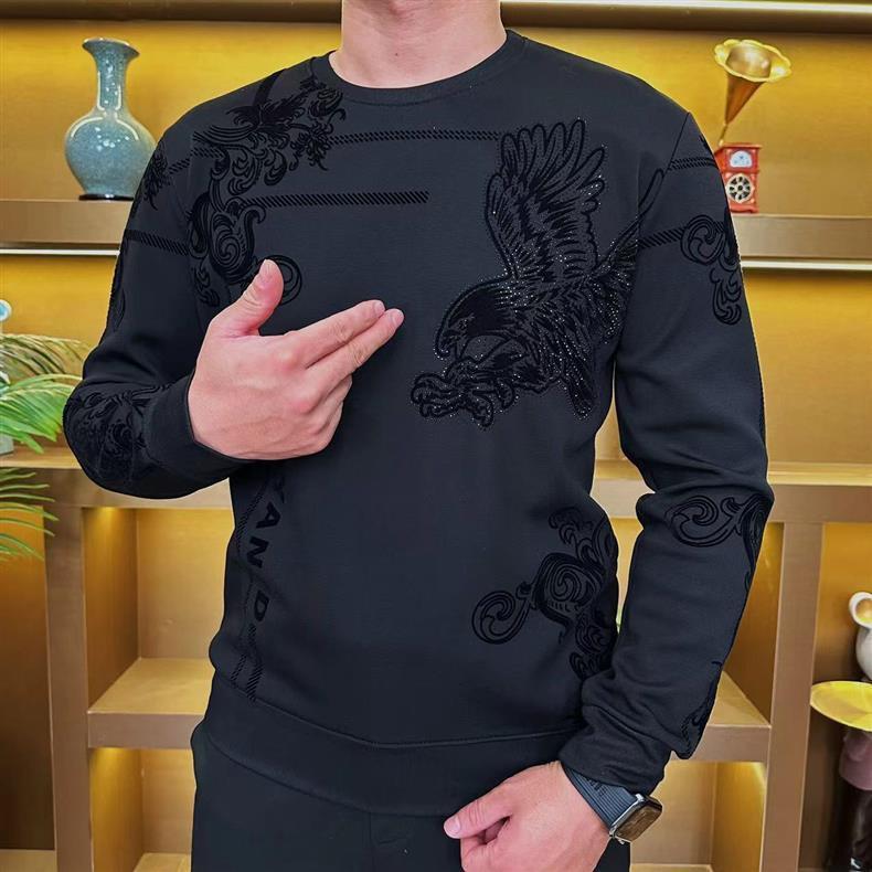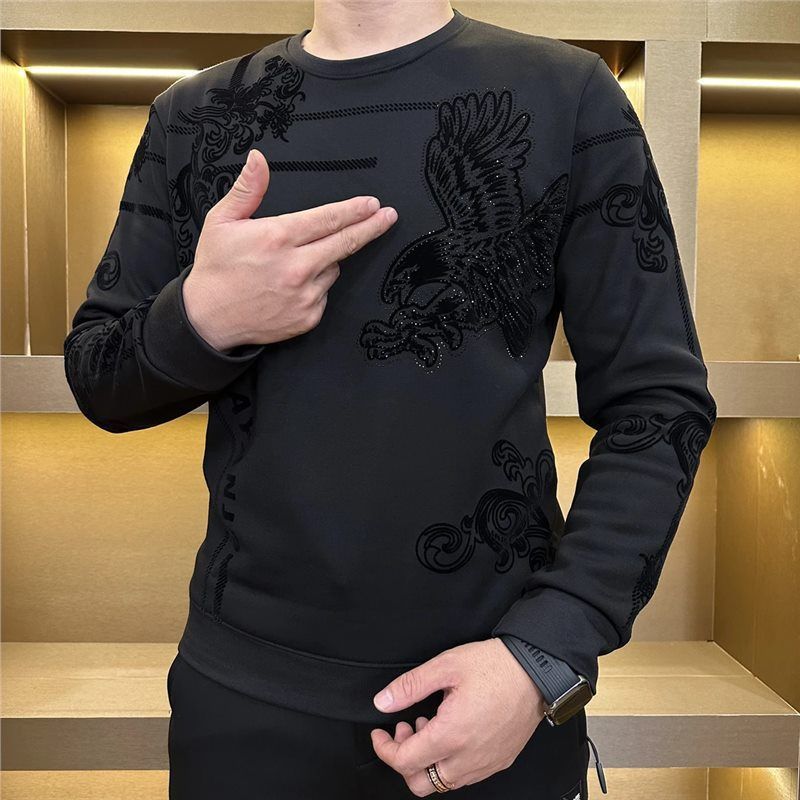 长袖2025新款加绒高档男士长袖圆领中青年卫衣宽松上衣打底衫秋衣