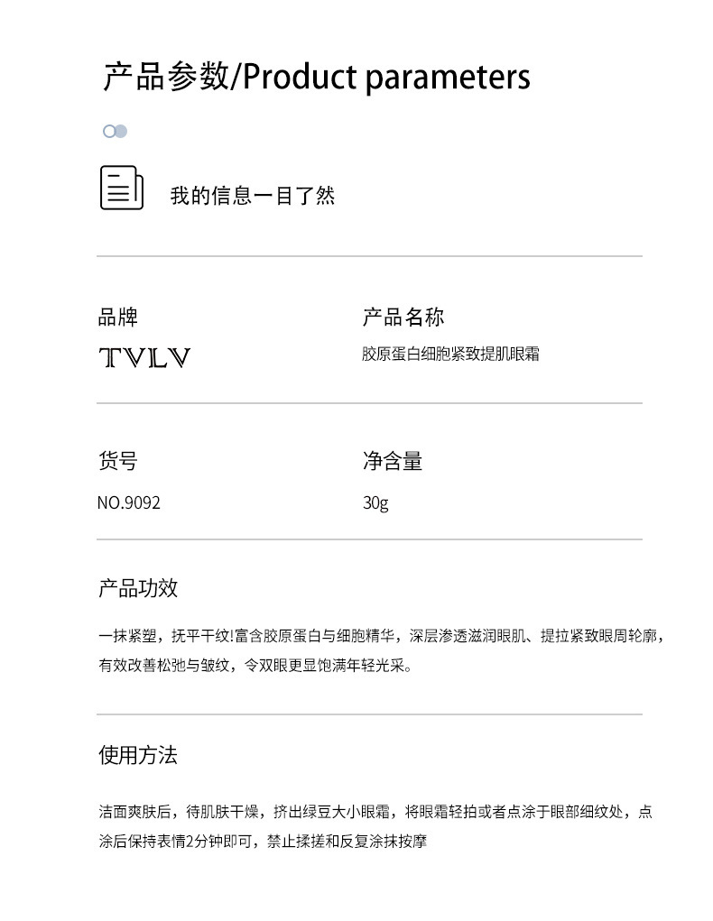 产品名称 TVLV胶原蛋白细胞紧致提肌眼霜