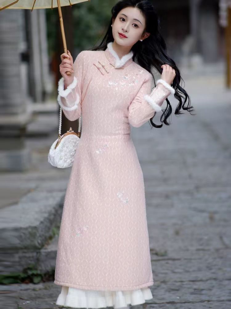 秋冬旗袍专用衬裙内搭汉服马面裙叠穿打底A字半身裙中长款木耳边