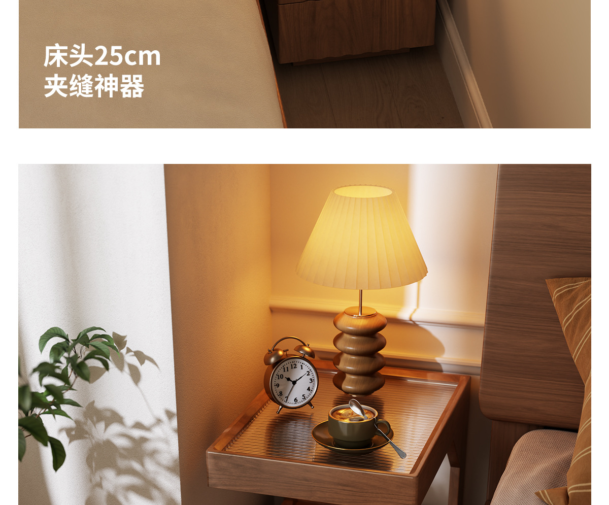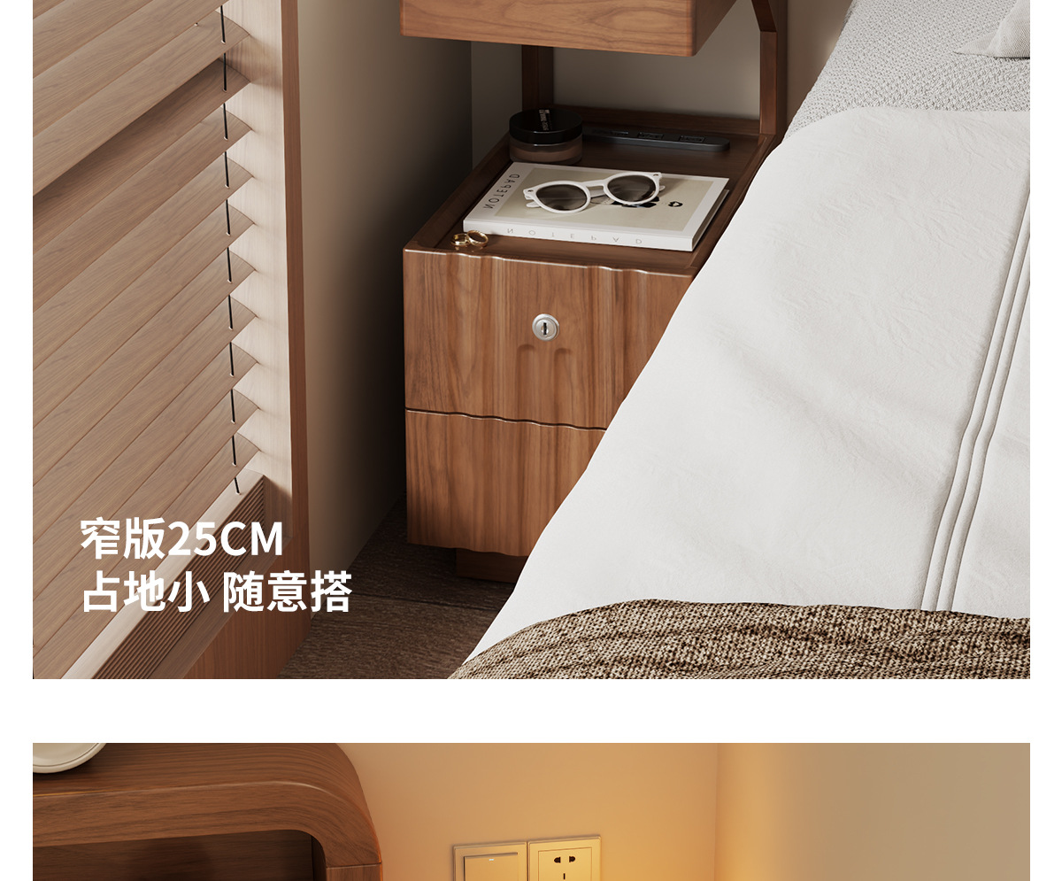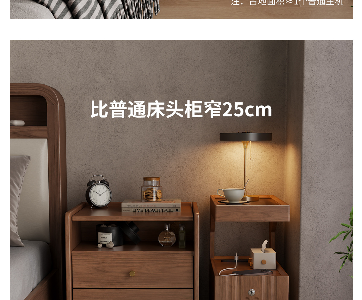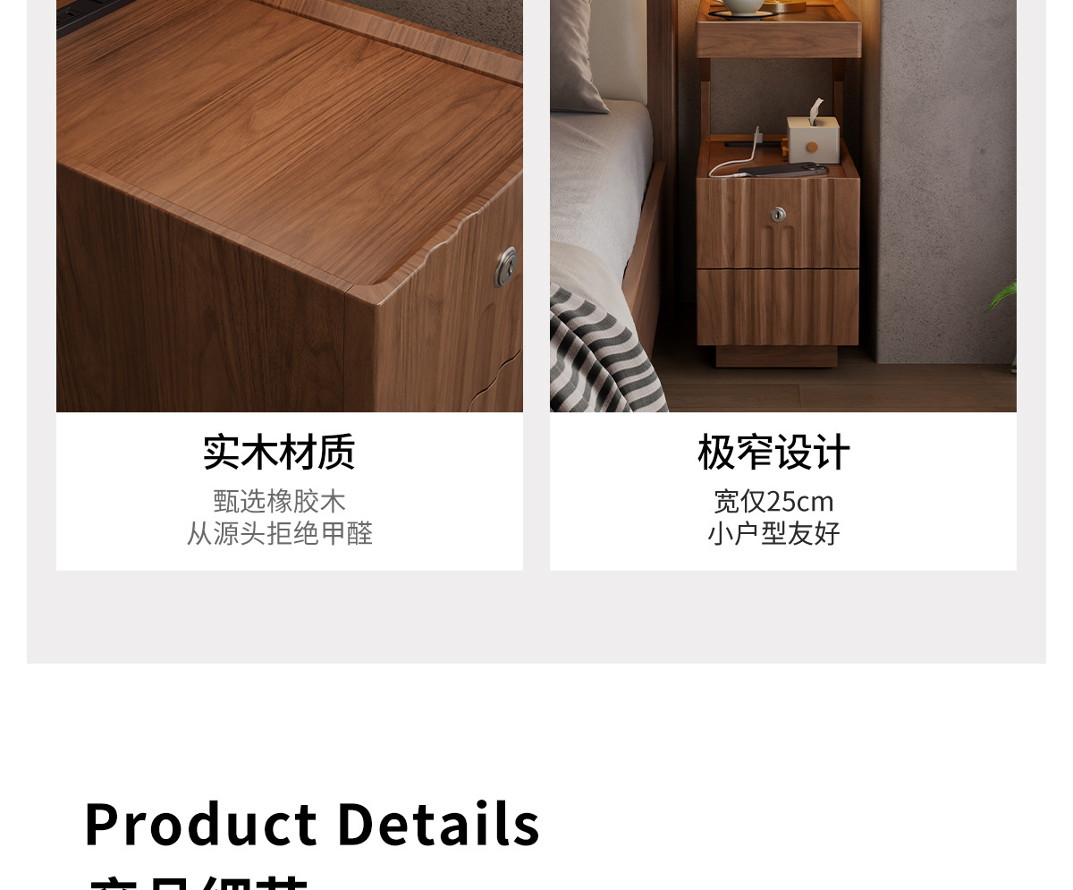 中古风床头柜实木卧室轻奢高级感床头收纳柜极窄简约智能床边柜