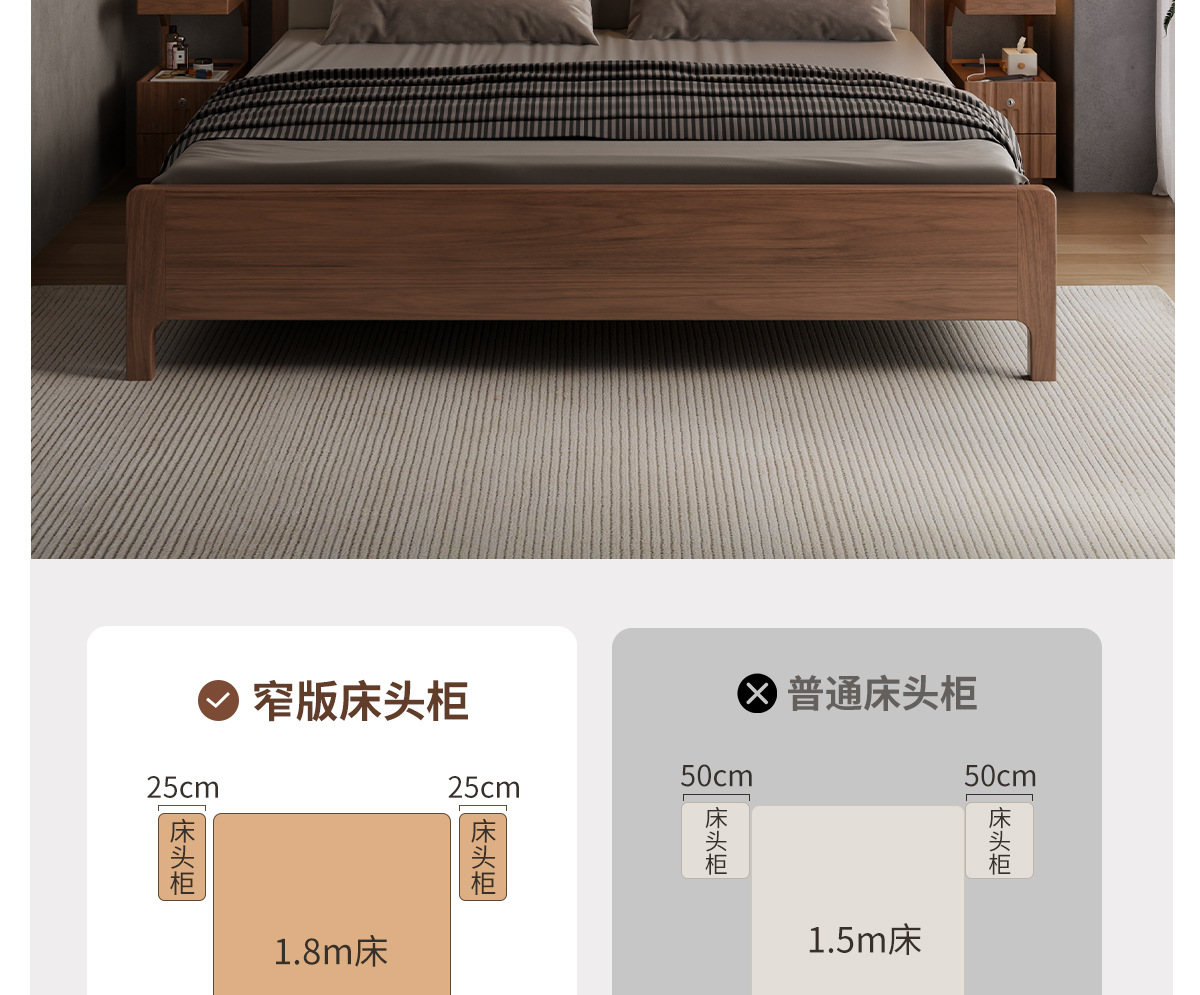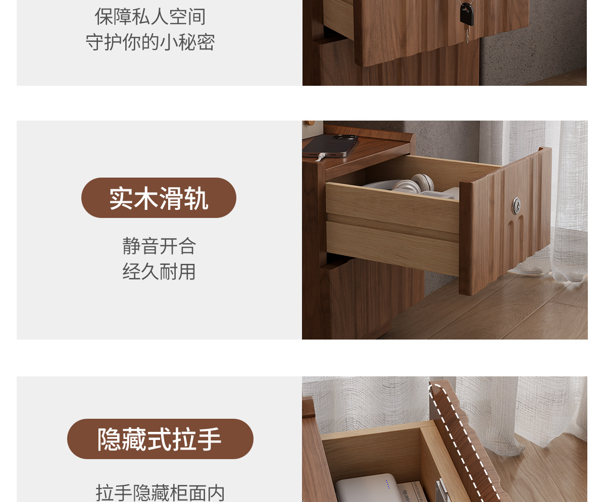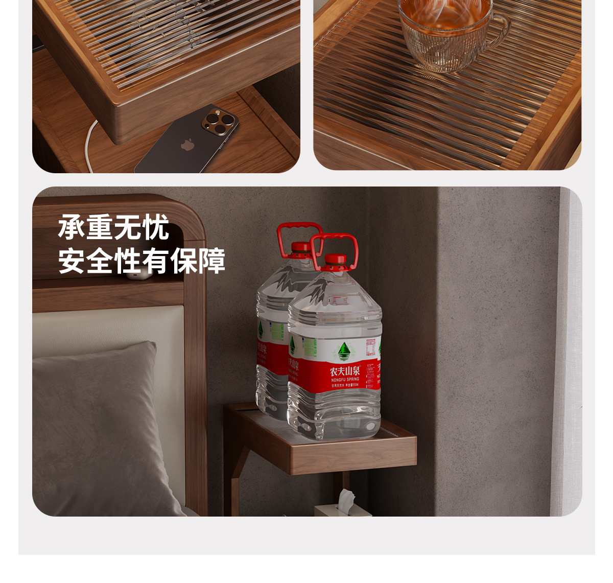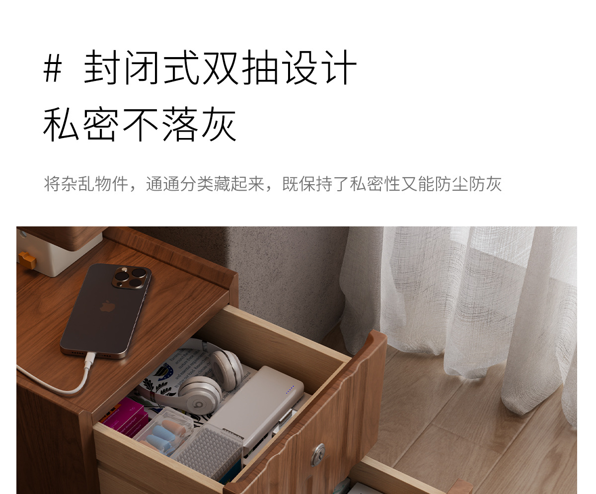 中古风床头柜实木卧室轻奢高级感床头收纳柜极窄简约智能床边柜