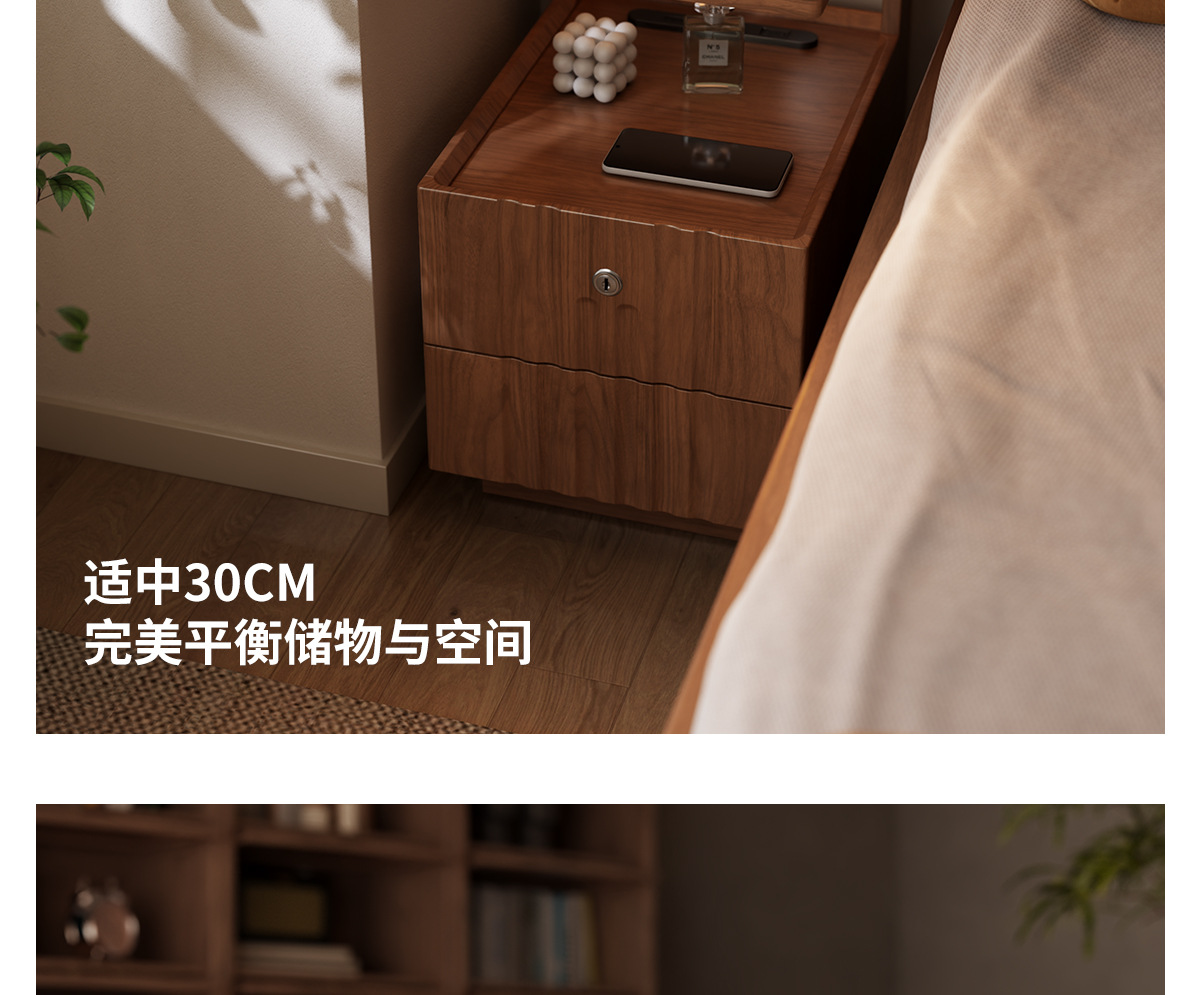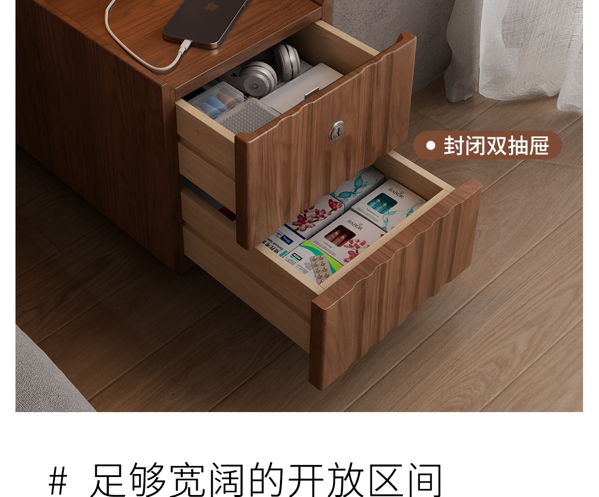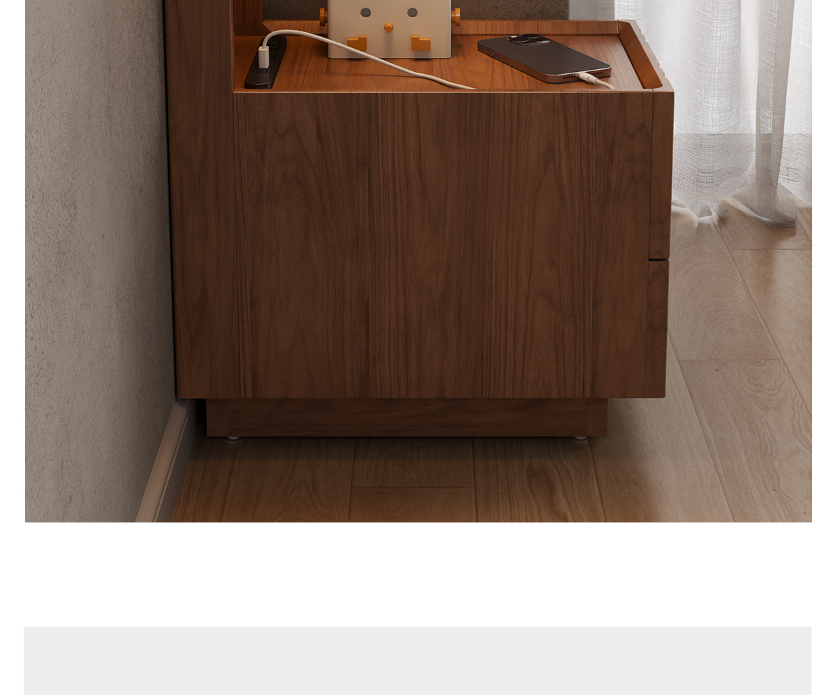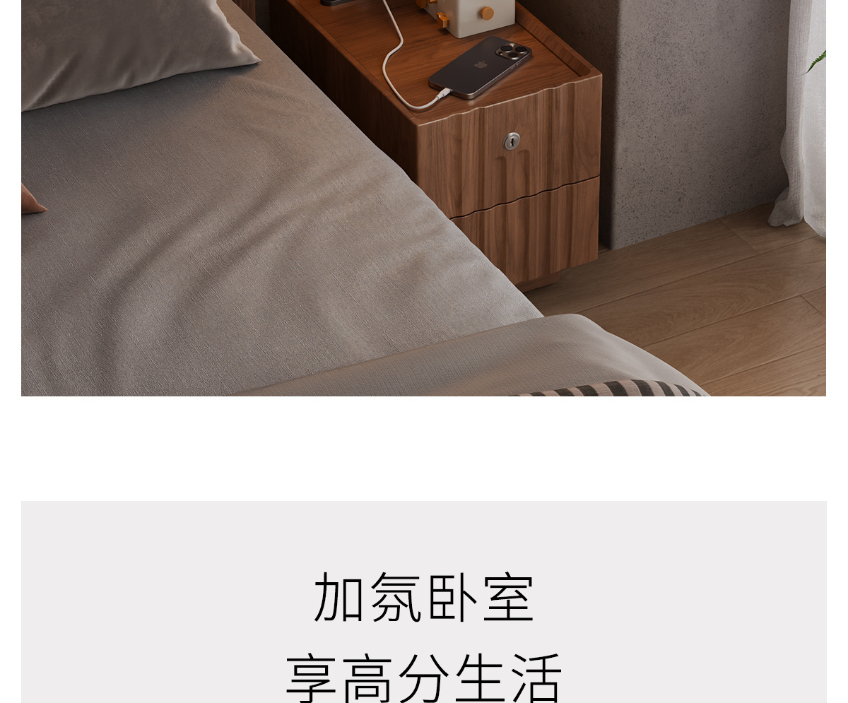 中古风床头柜实木卧室轻奢高级感床头收纳柜极窄简约智能床边柜