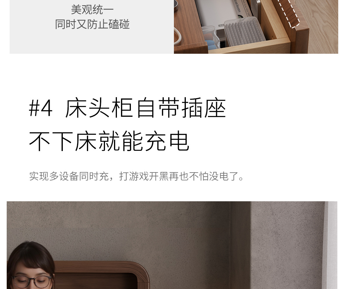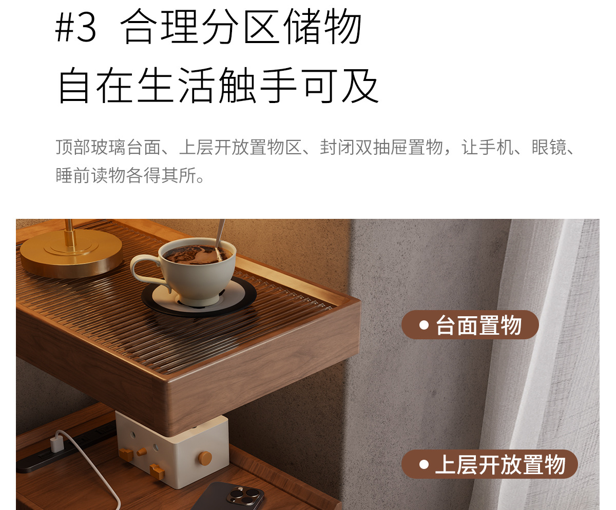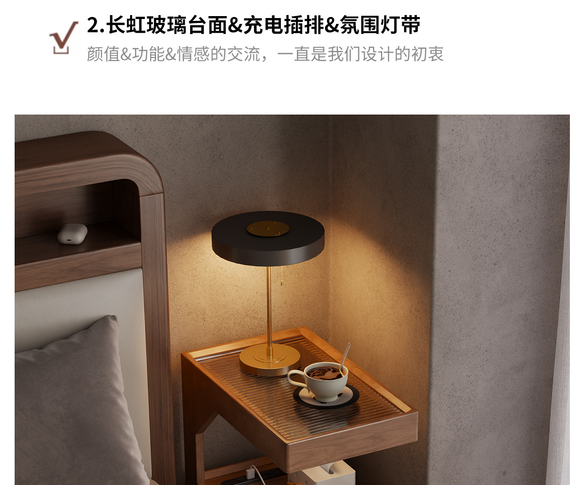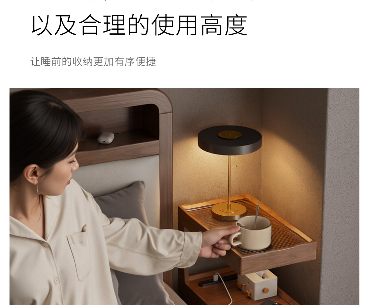 中古风床头柜实木卧室轻奢高级感床头收纳柜极窄简约智能床边柜