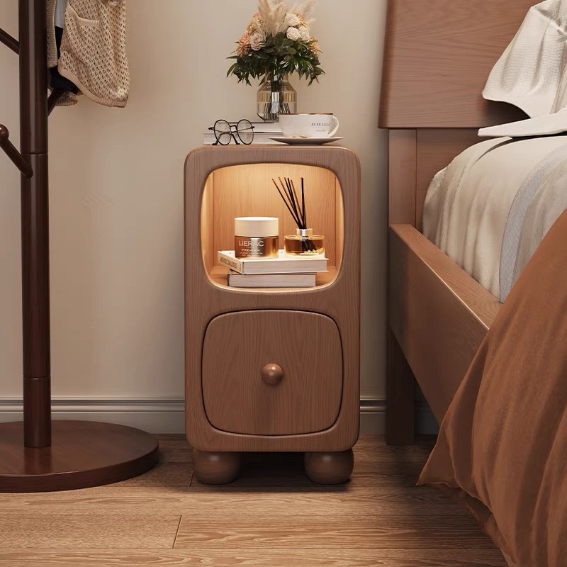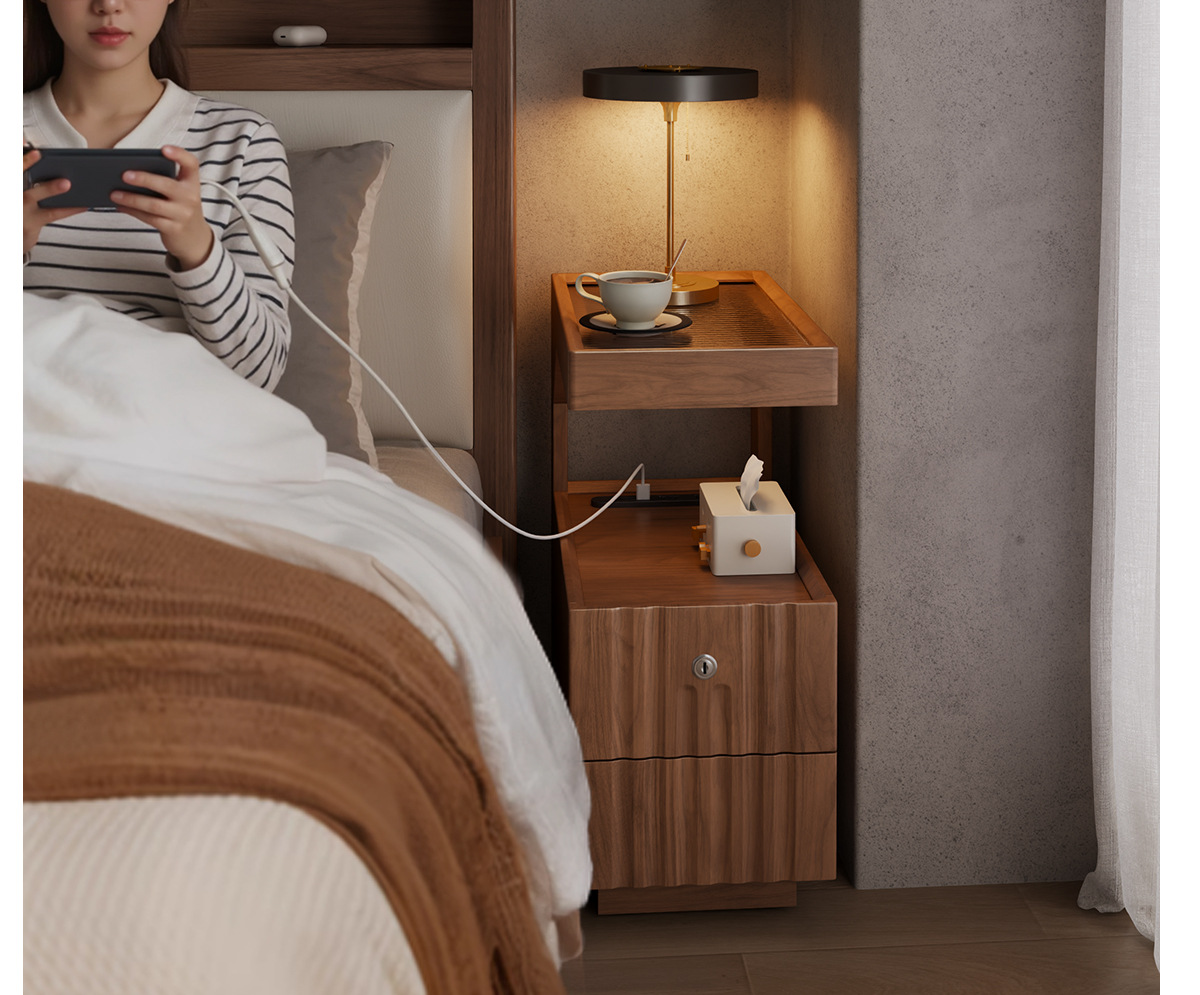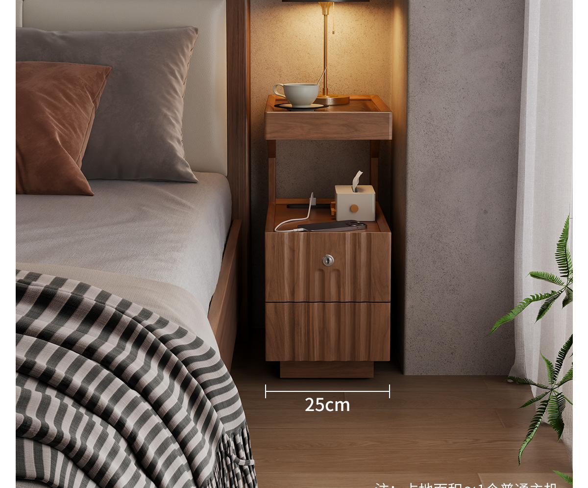 中世のベッドサイドテーブル寝室無垢材スマートベッドサイド収納キャビネット多機能小型ホームスマート非常に狭いベッドサイドキャビネット