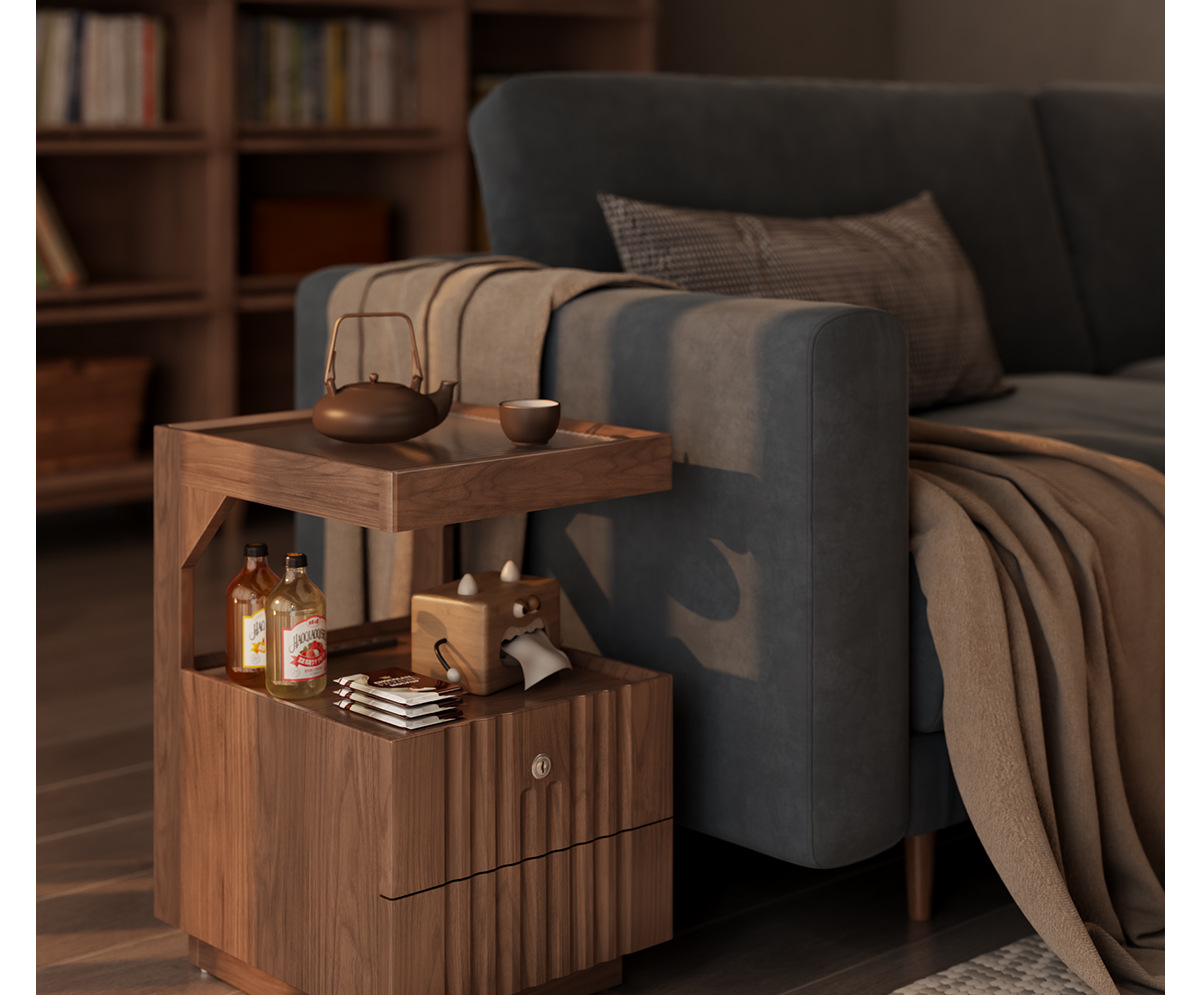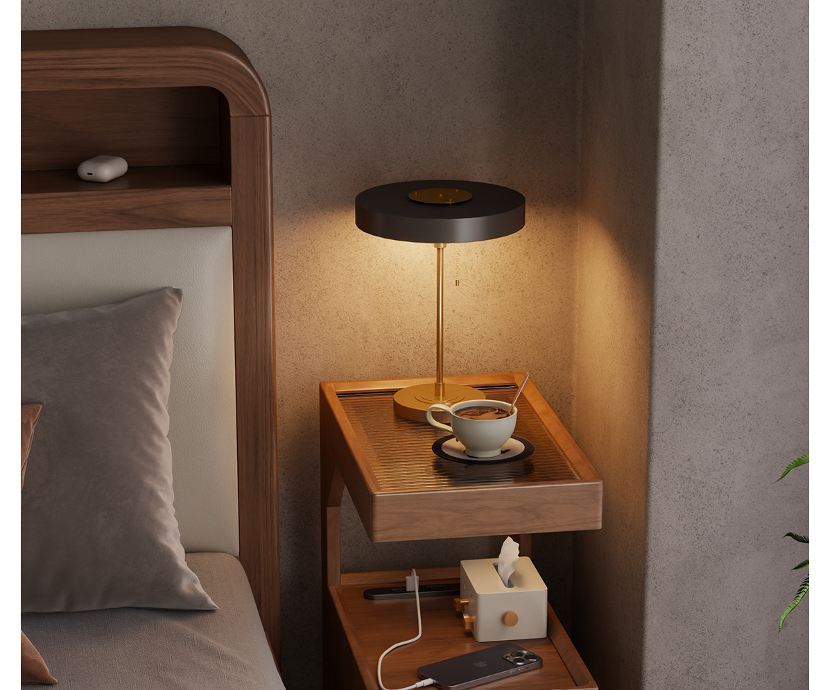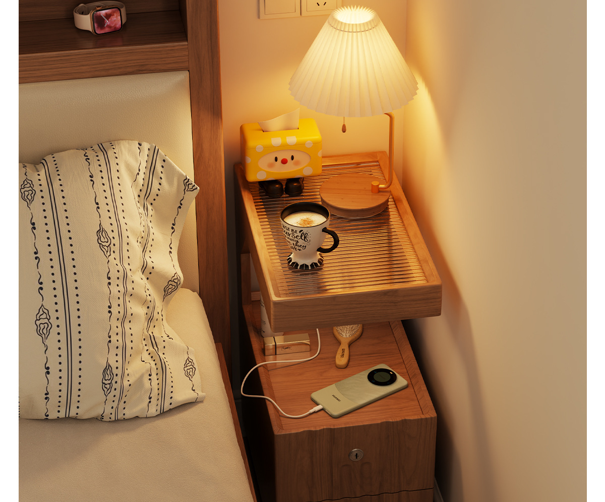 中世のベッドサイドテーブル寝室無垢材スマートベッドサイド収納キャビネット多機能小型ホームスマート非常に狭いベッドサイドキャビネット