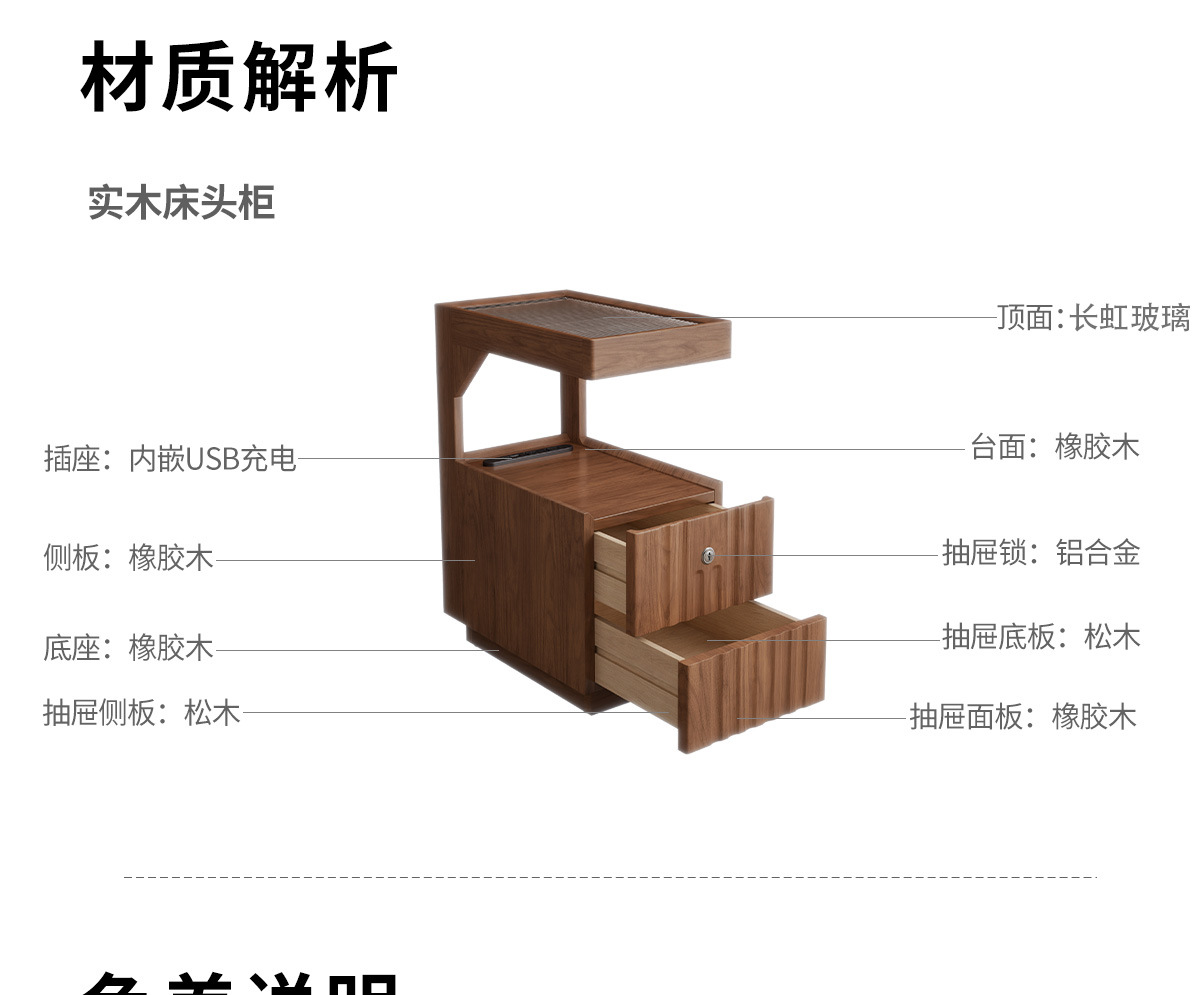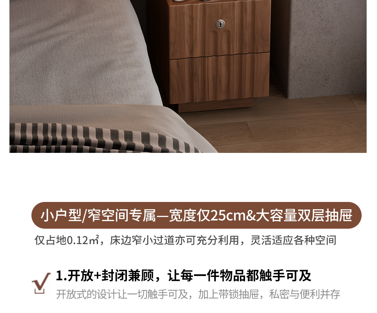 实木床头柜简约家用卧室带锁储物小型床边柜轻奢高级感极窄超窄