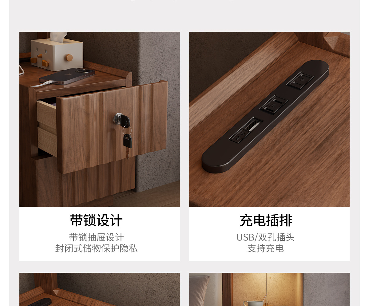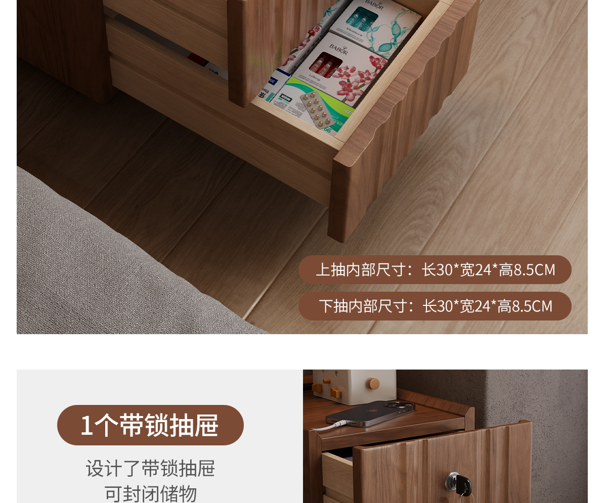 床头柜实木卧室家用带锁床边柜多功能简约智能收纳柜保险箱一体