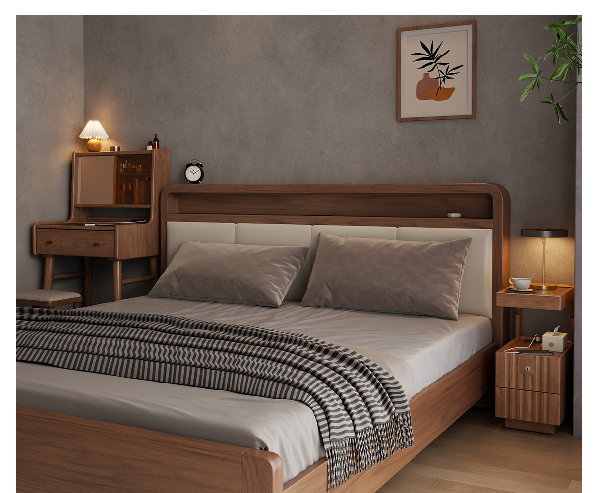 実木ベッドの頭箱の小さい部屋型の寝室は軽くて豪華で高級感があります。