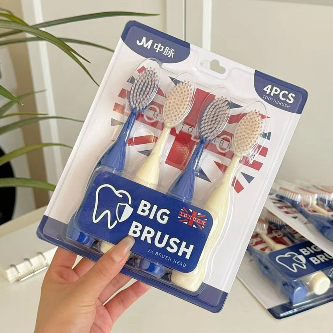 JM中脈ビッグマック歯ブラシ4本入りワイドヘッド歯ブラシ家庭用ソフト毛清潔歯拡張歯ブラシ成人