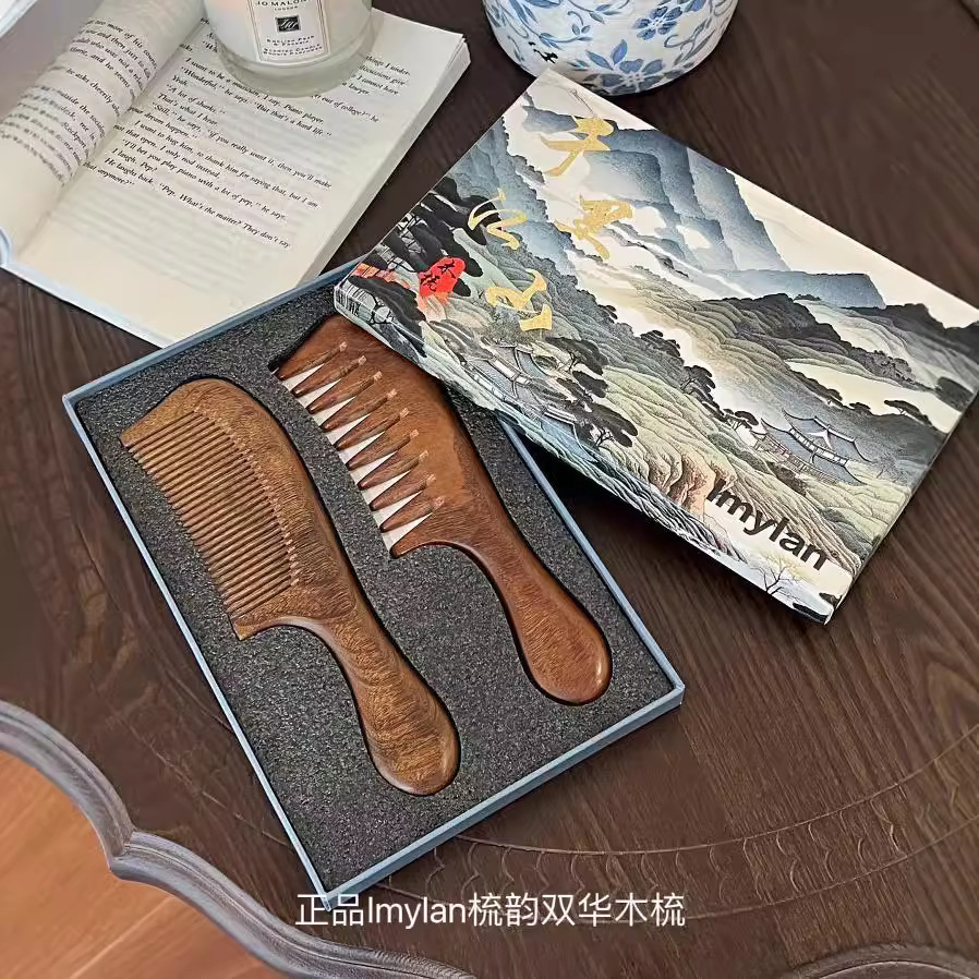 Imylan櫛韻双華木櫛二点セット幅歯細い歯家庭用マッサージ櫛