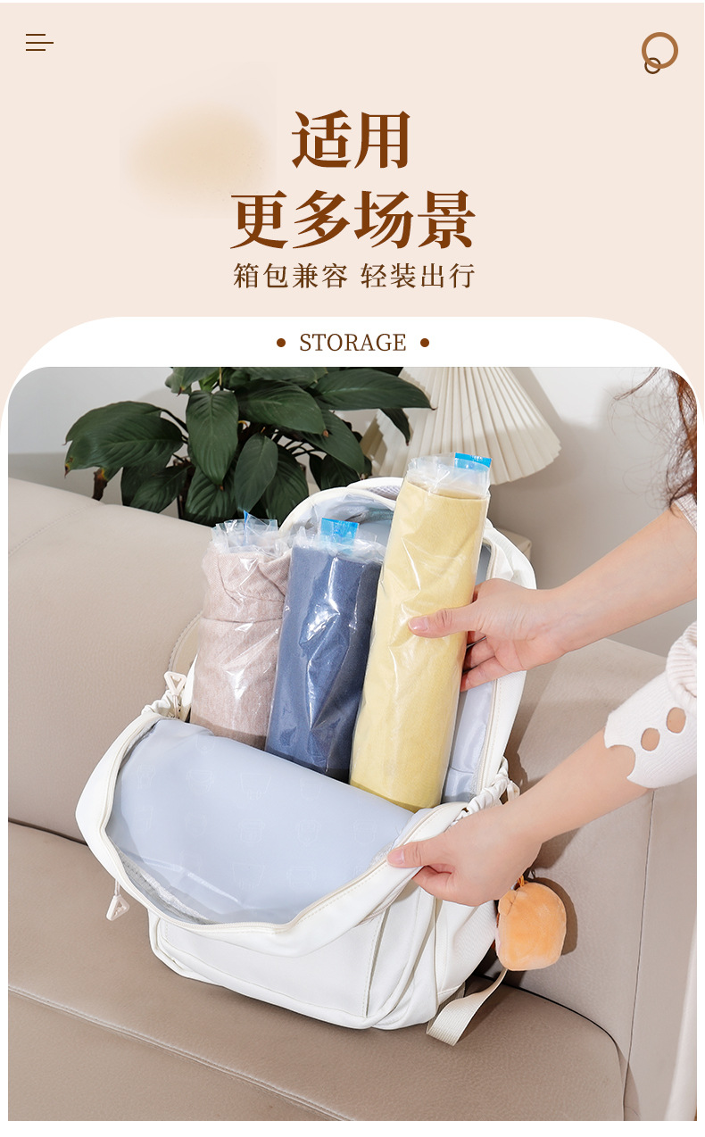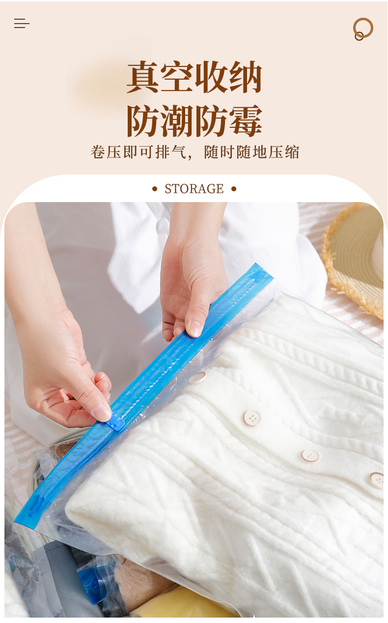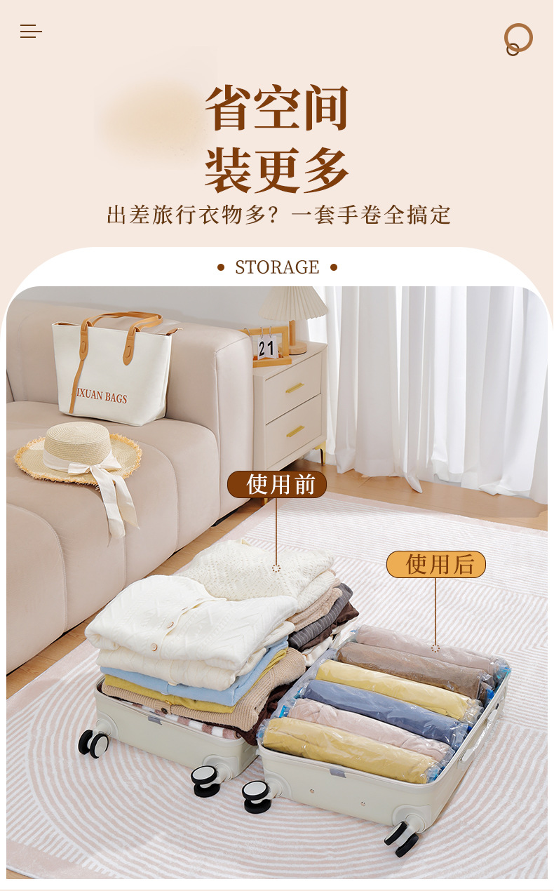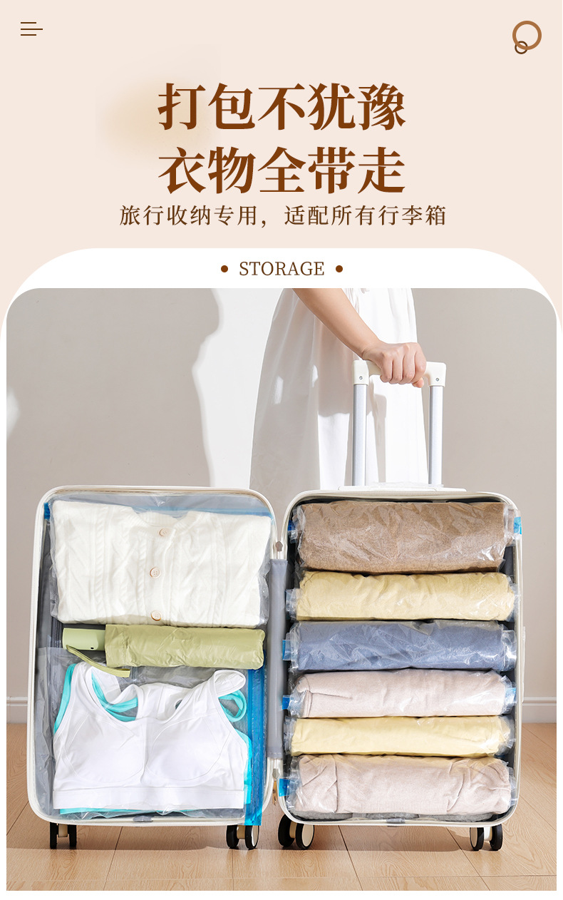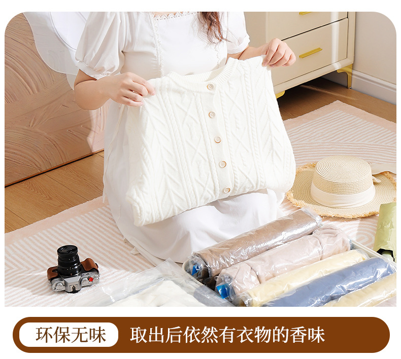 跨境抽气透明真空压缩手卷袋 旅行行李箱专用防尘防潮真空压缩袋