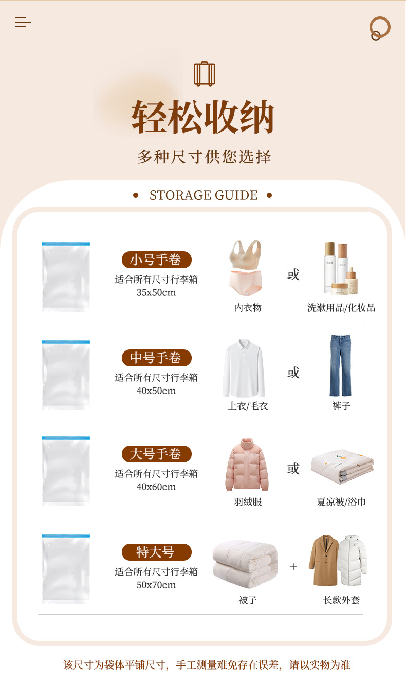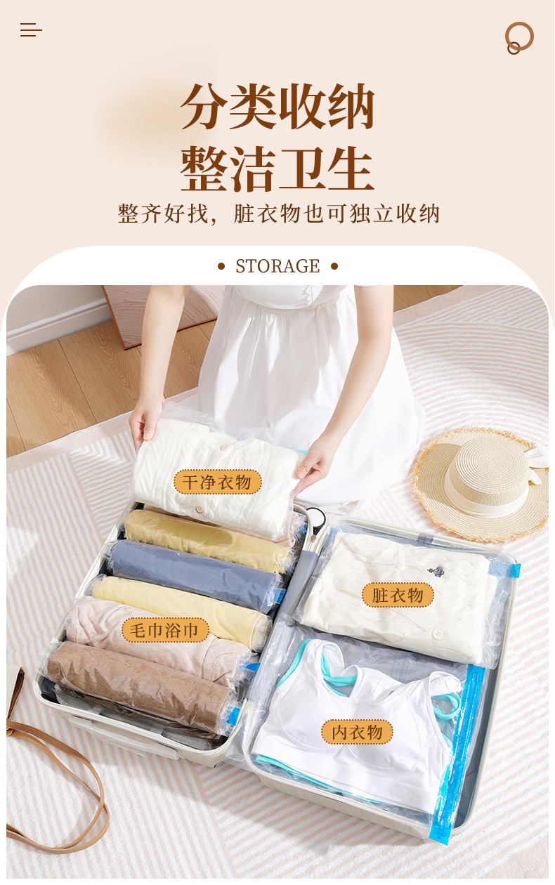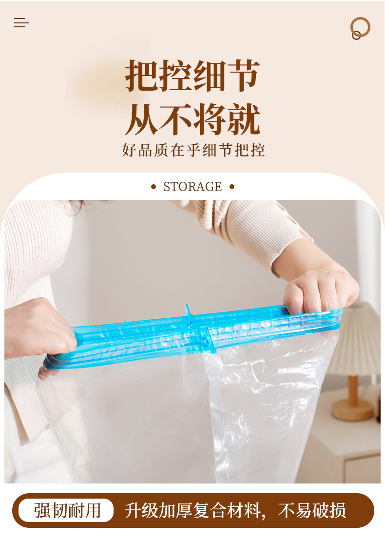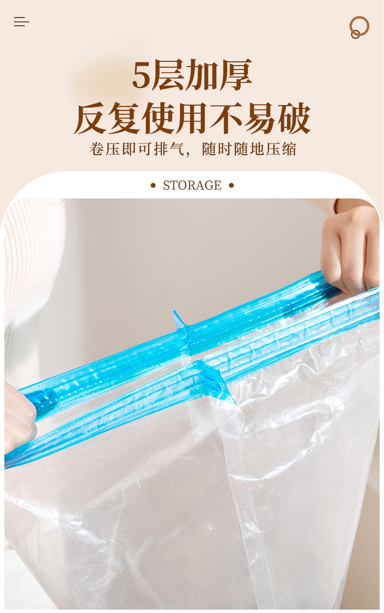跨境抽气透明真空压缩手卷袋 旅行行李箱专用防尘防潮真空压缩袋