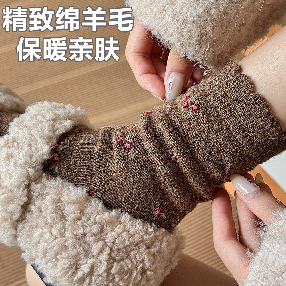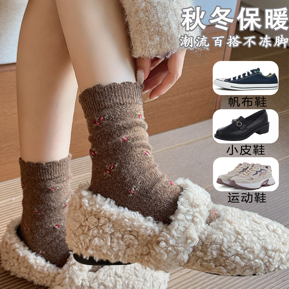 加厚保暖羊毛袜田园风复古百搭中筒袜堆堆秋冬季百搭植绒韩系可爱