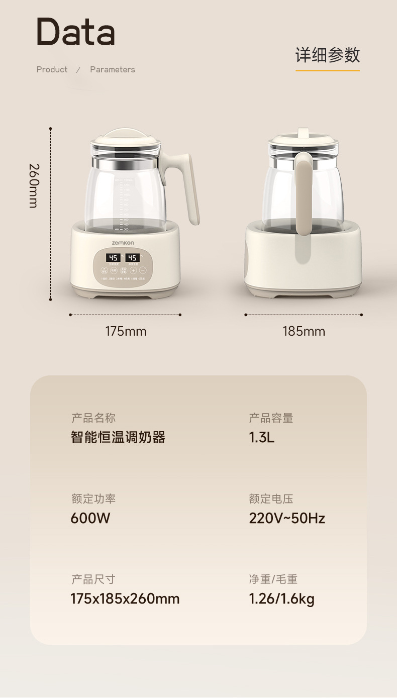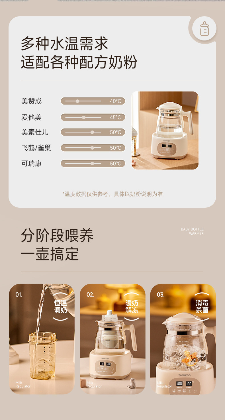 Zemkon多功能婴儿恒温调奶器家用喂养台暖奶热奶消毒一体恒温壶