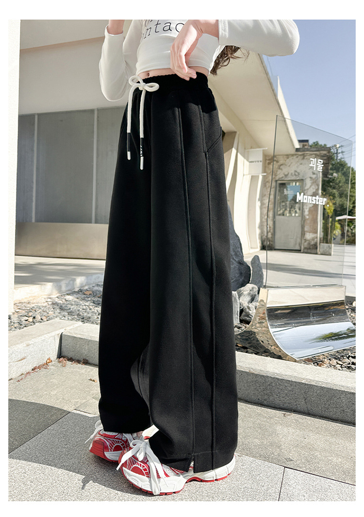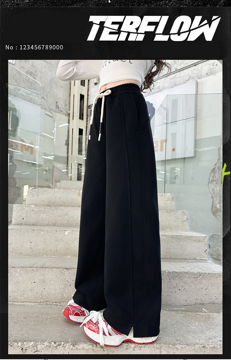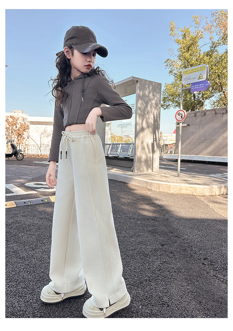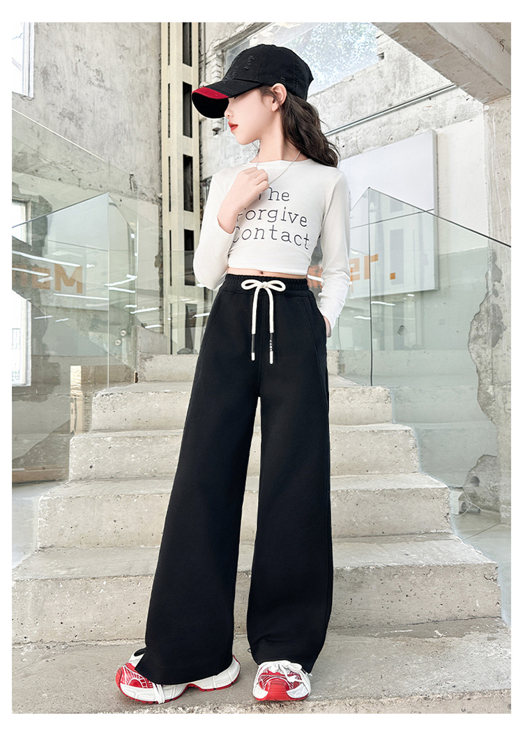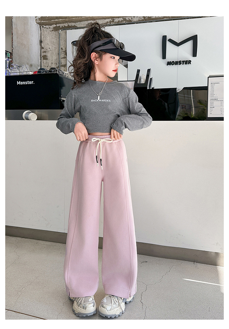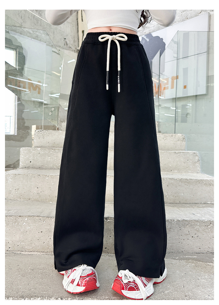 女の子秋冬パンツ2025新作子供おしゃれ中高生向けファッショナブル裏起毛長ズボン秋服ストレートワイドパンツ