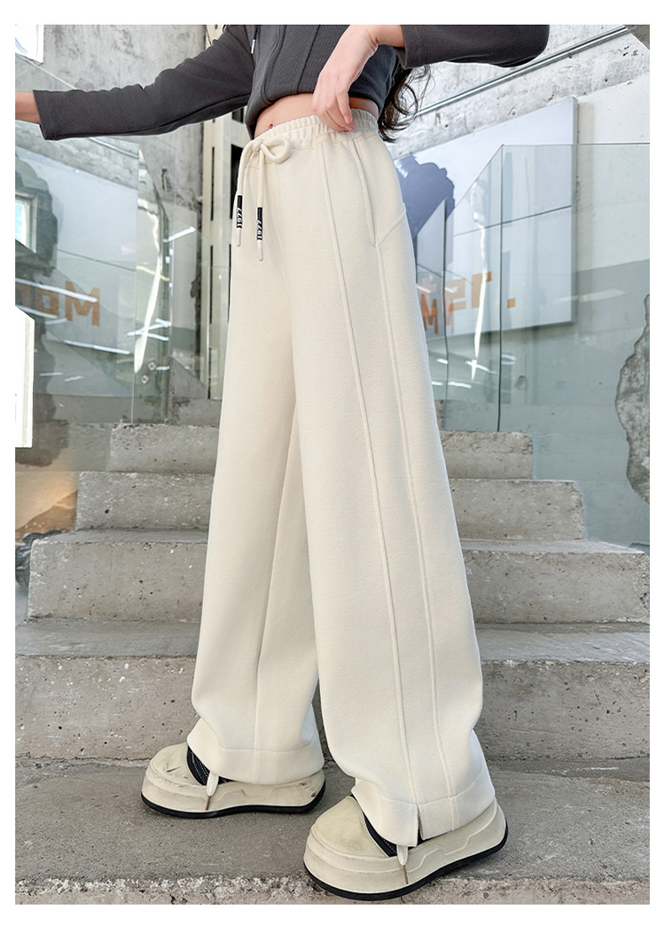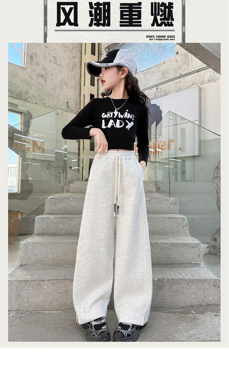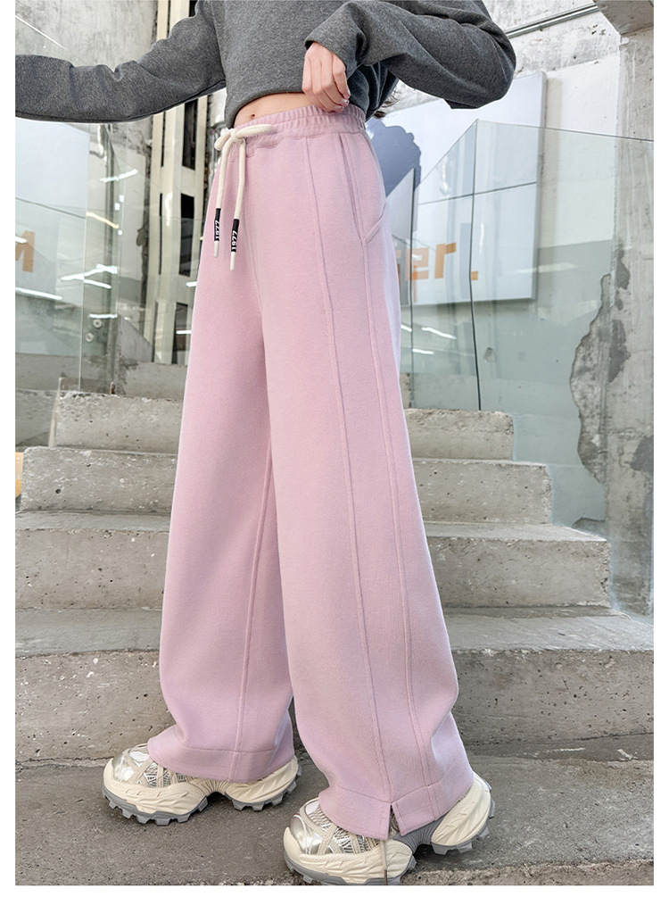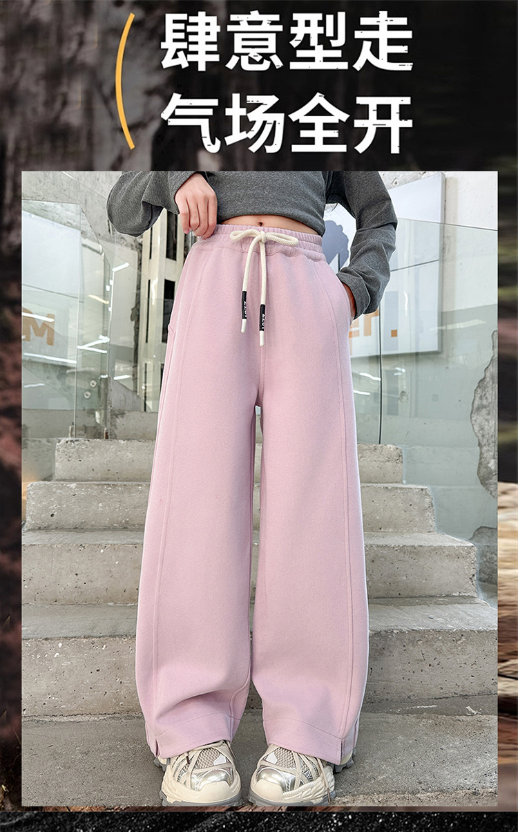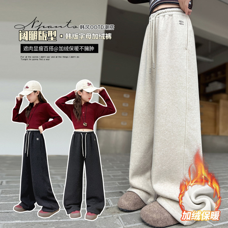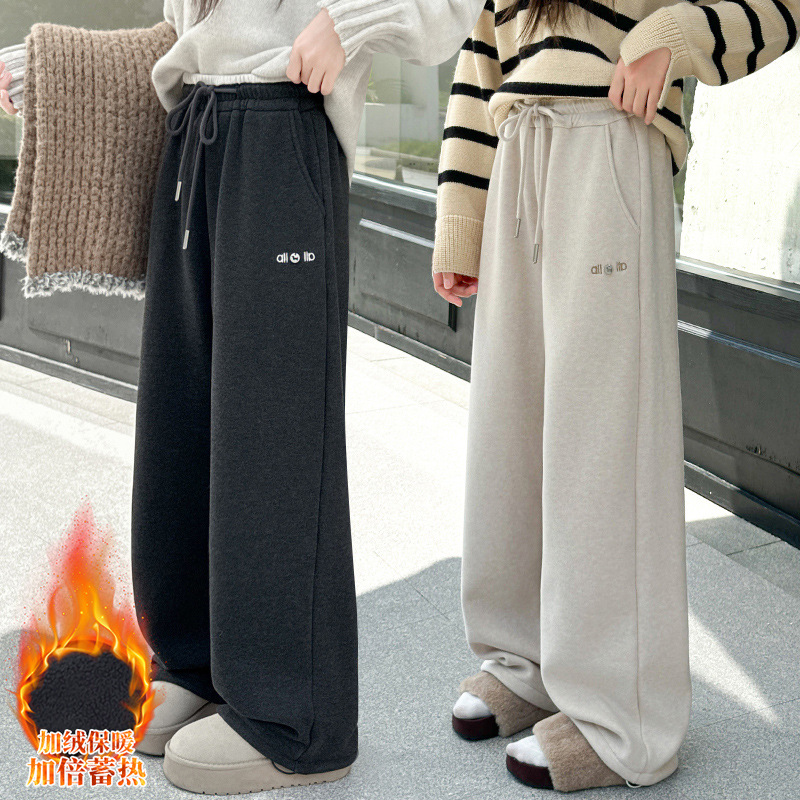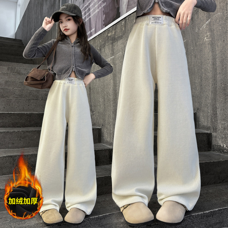 女童加绒裤子秋冬2025新款儿童冬装阔腿糯米裤大童宽松休闲裤长裤