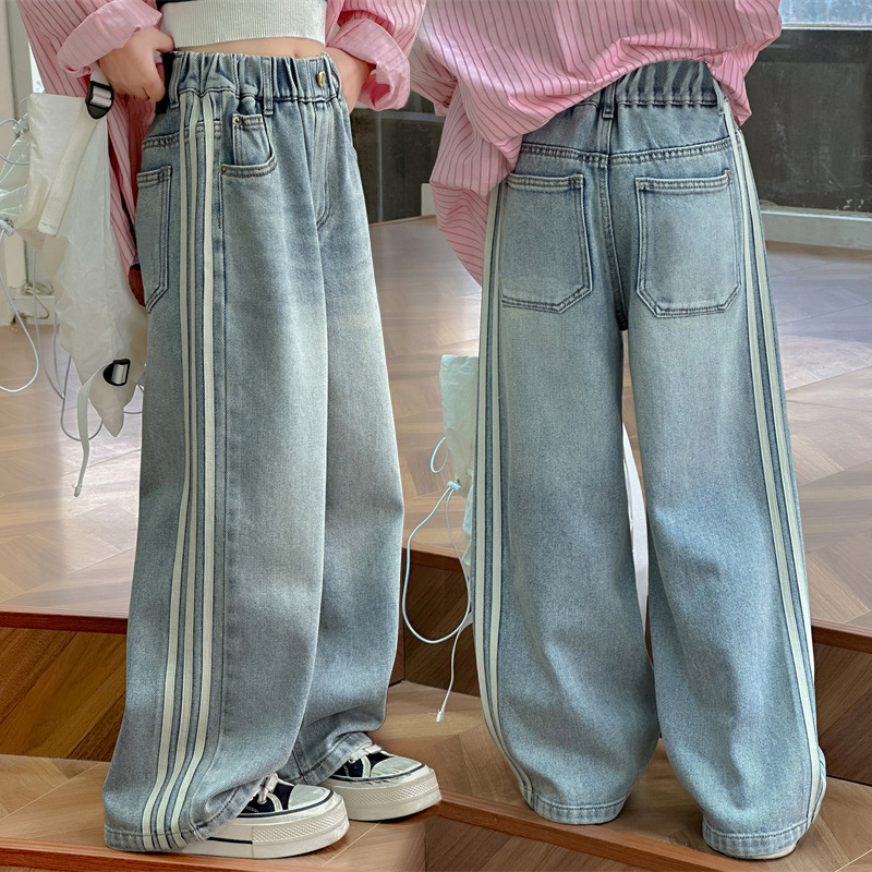 女の子用デニムパンツ 春秋 2026年新作 子供用パンツ 外出着 春 韓国風子供服 大きな子供向け ワイドパンツ