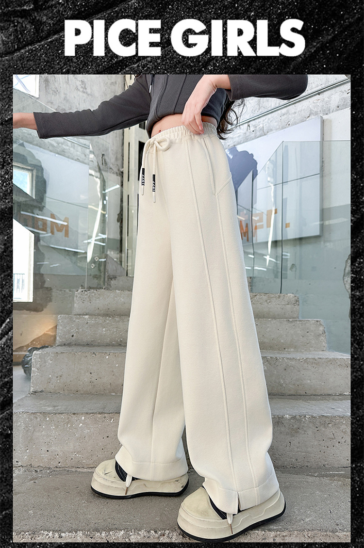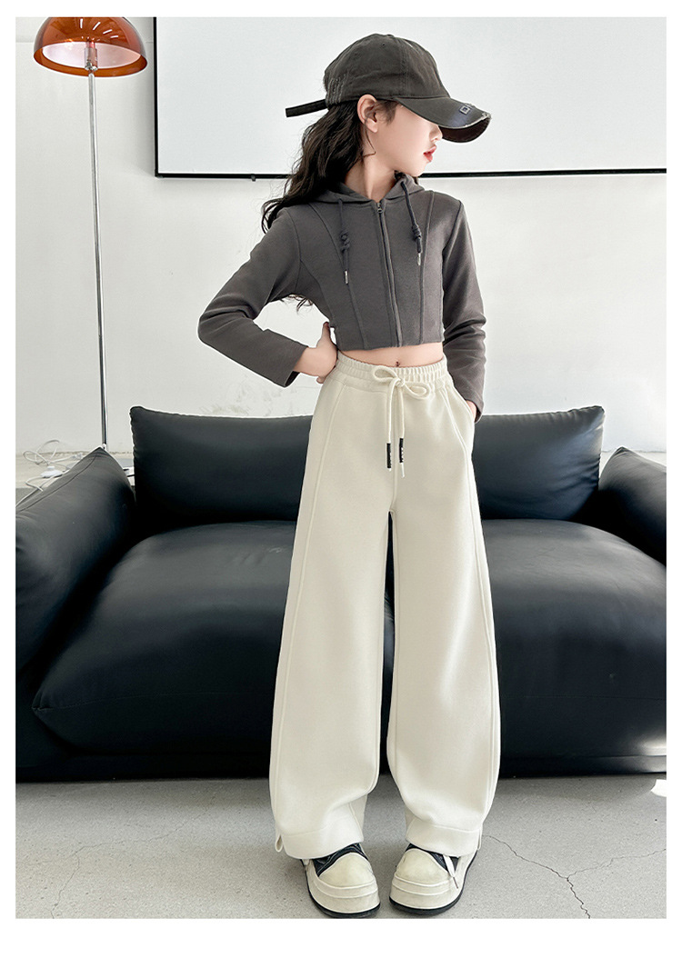 女の子用裏起毛ワイドパンツ 冬服 2025年新作 女の子用ドレープストレートパンツ 厚手保温細身ロングパンツ トレンド