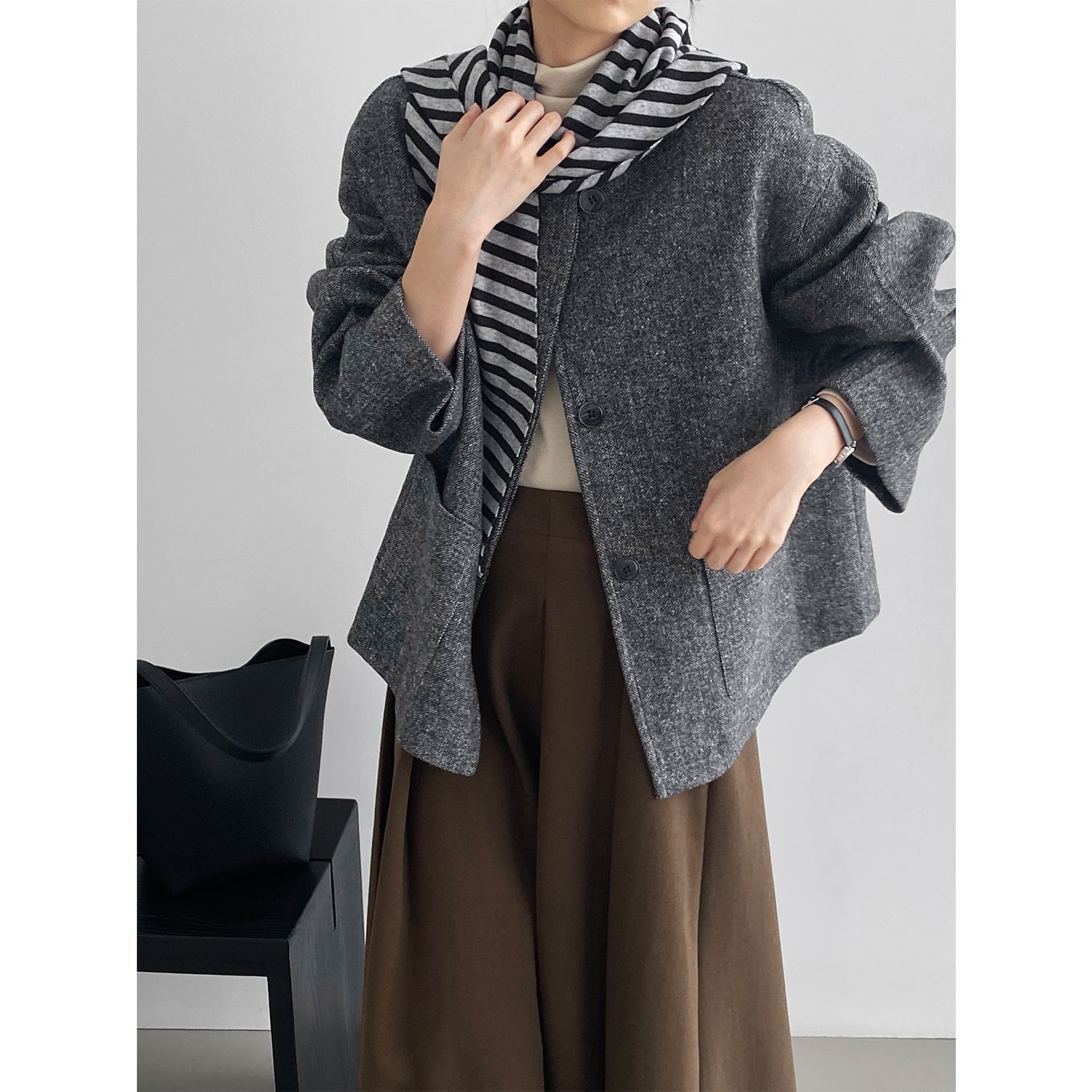 【福利款 不退换】那末 韩系复古夹棉毛呢外套女小个子上衣6172