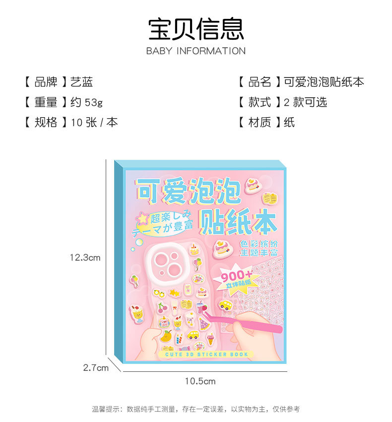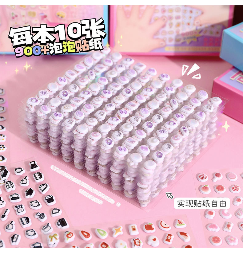 可爱泡泡贴纸合集本卡通3D立体贴纸DIY手机壳装饰贴儿童指甲贴画