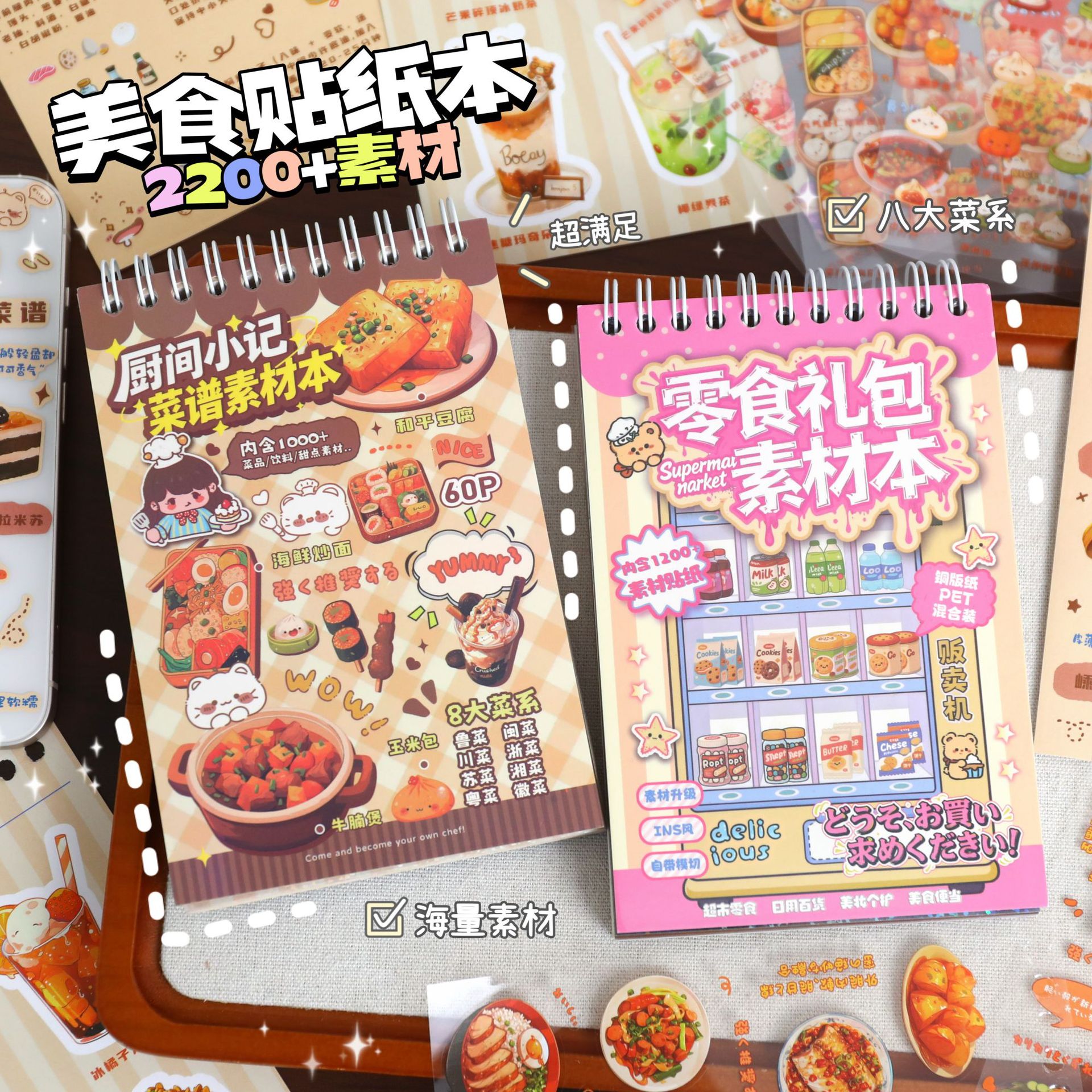 创意贴纸书菜谱贴纸素材本创意美味食物手账贴纸书儿童DIY拼贴本