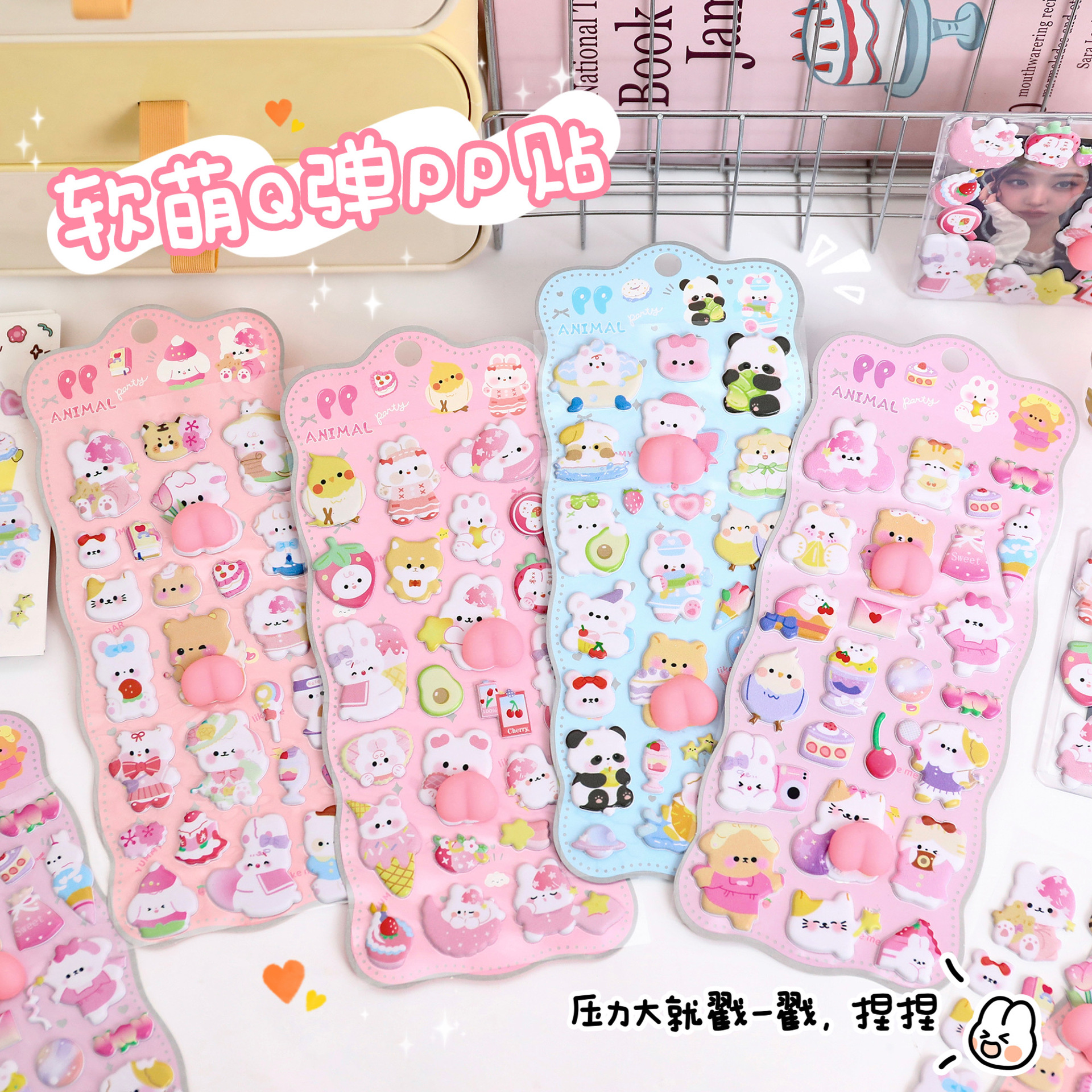 3D软萌屁屁立体贴纸捏捏动物可爱兔子小熊装饰贴手机壳水杯贴画