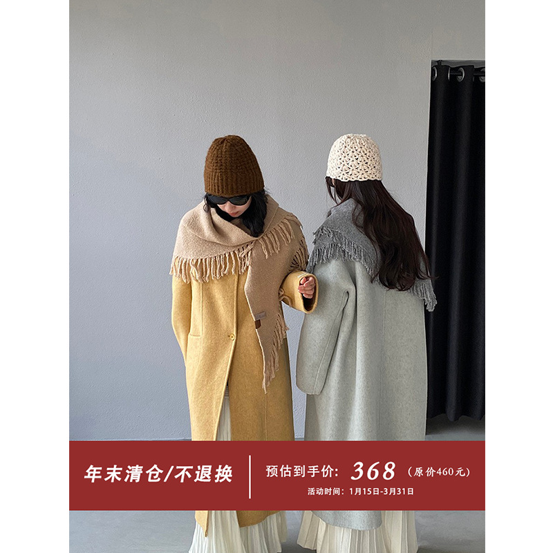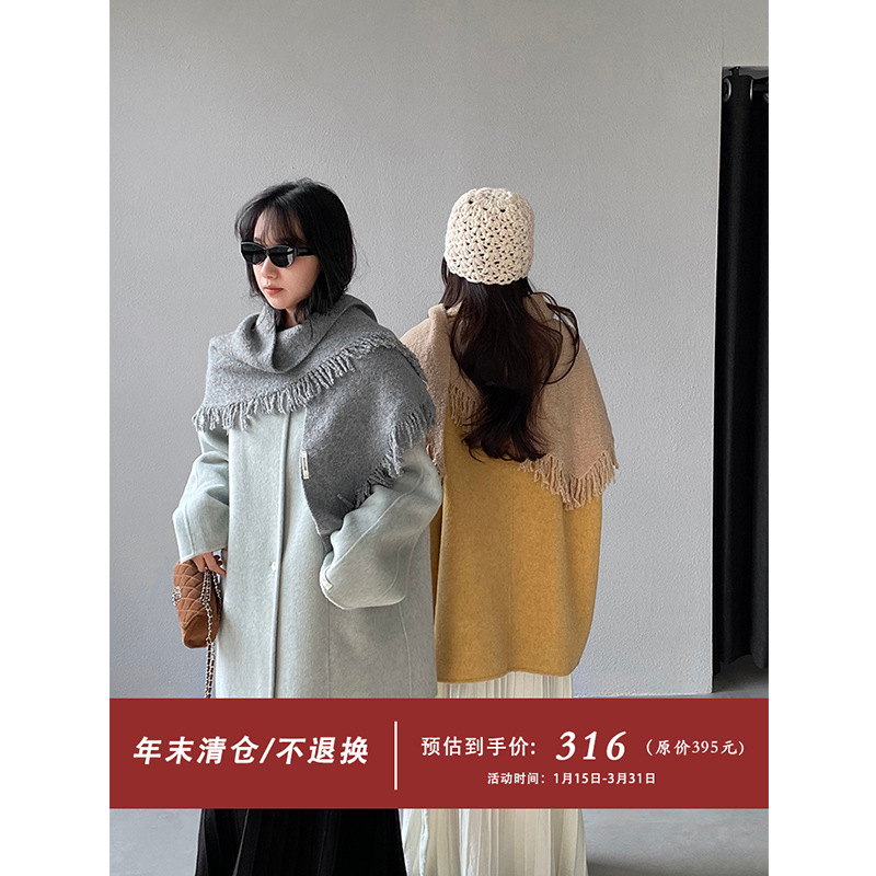【福利款 不退换】江左 流苏围巾双面呢大衣高级感中长款外套8577
