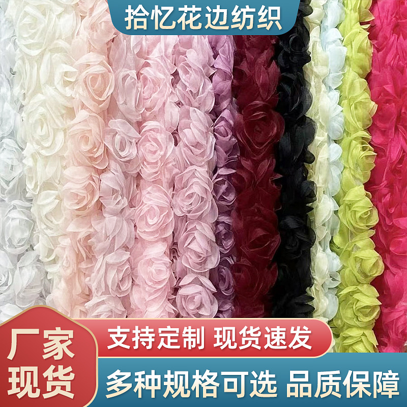 厂家直销满幅立体大玫瑰盘带绣花面料洛丽塔连衣裙童装花边布料
