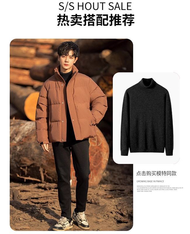 冬季新款205潮牌羽绒服男款休闲立领加厚短款男士面包服冬天外套