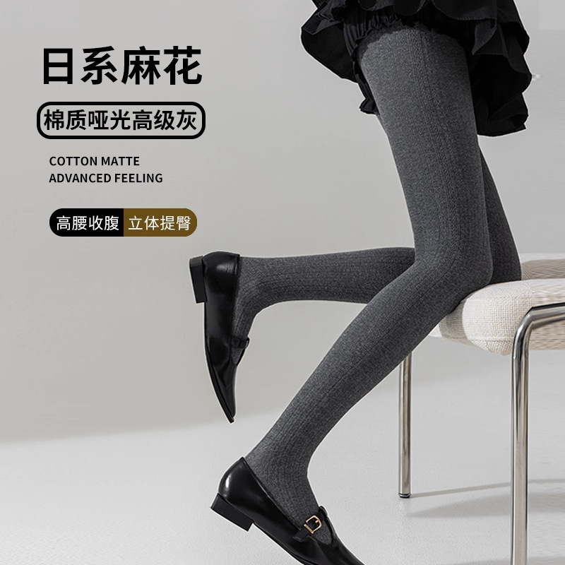 2025新麻花连裤袜女秋冬季薄绒保暖加厚格雷深灰色微压显瘦打底裤