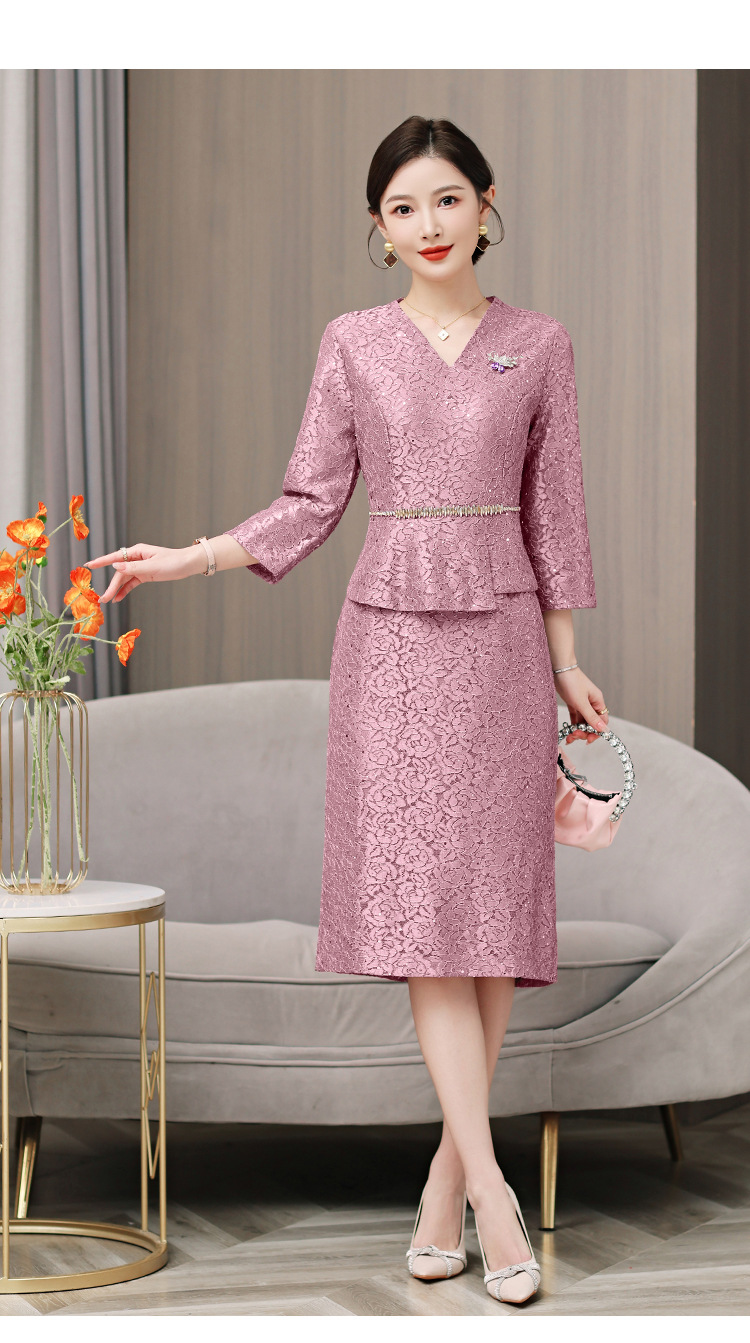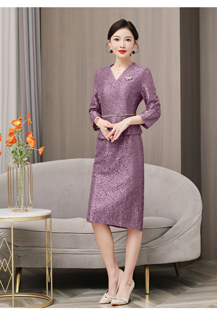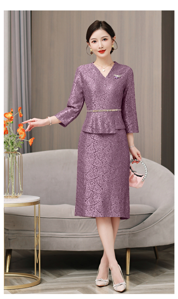 お母さんの服の夏服のファッションのスーツのお母さんの服のお祝いのファッションの気質は痩せています。