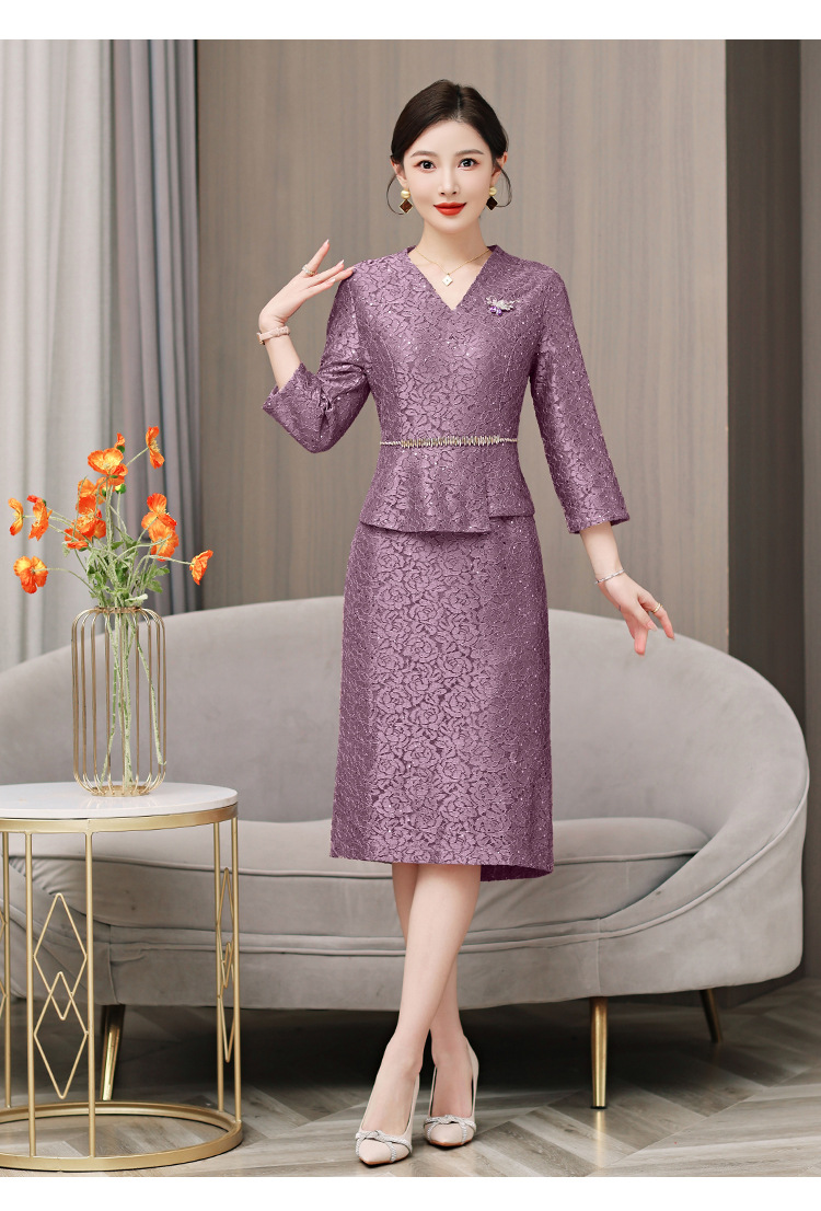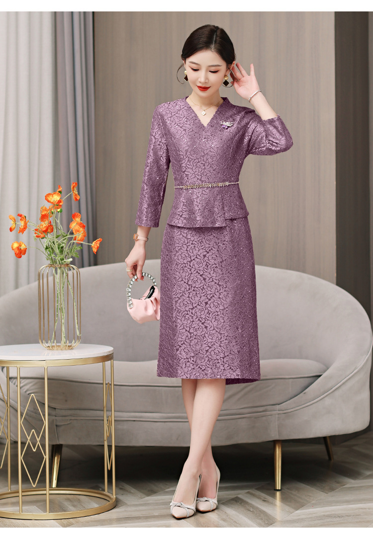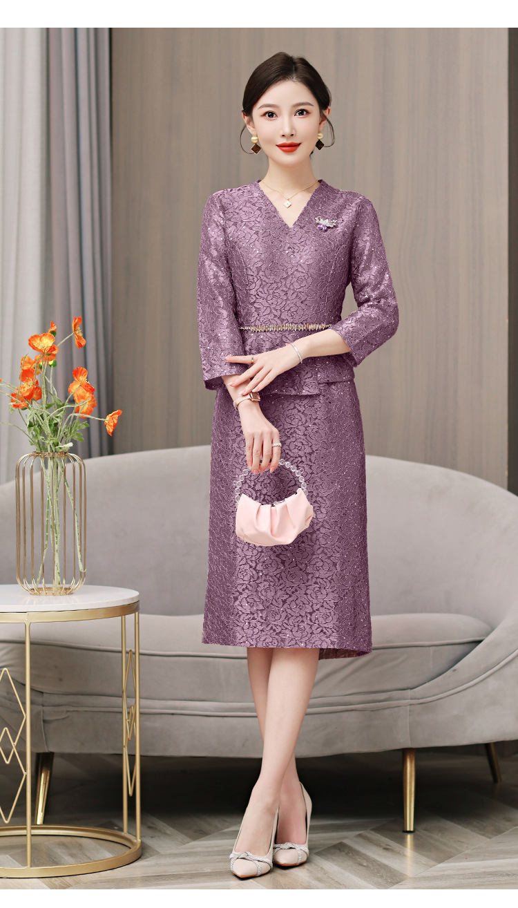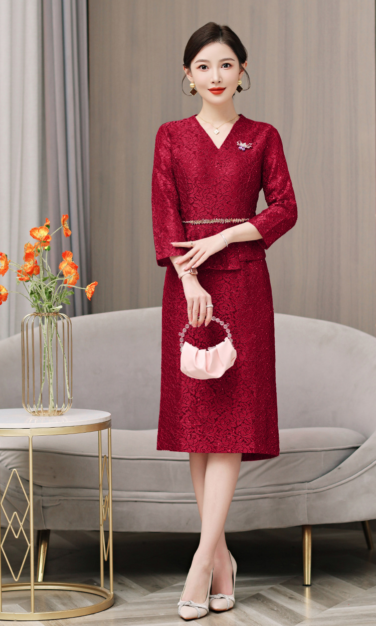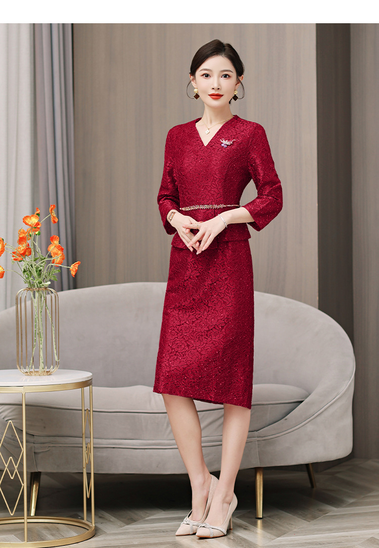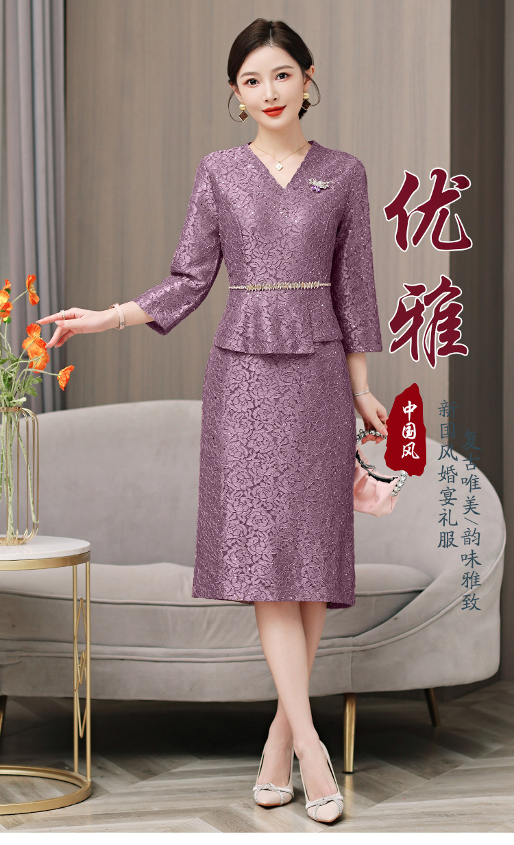 喜婆婆婚宴装连衣裙2025新款女春秋冬妈妈结婚礼服两件套