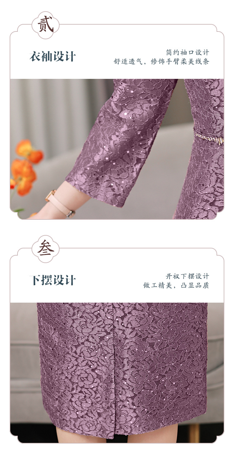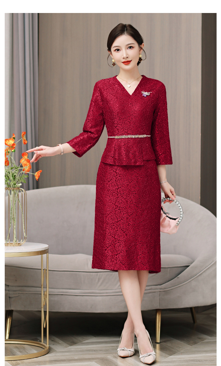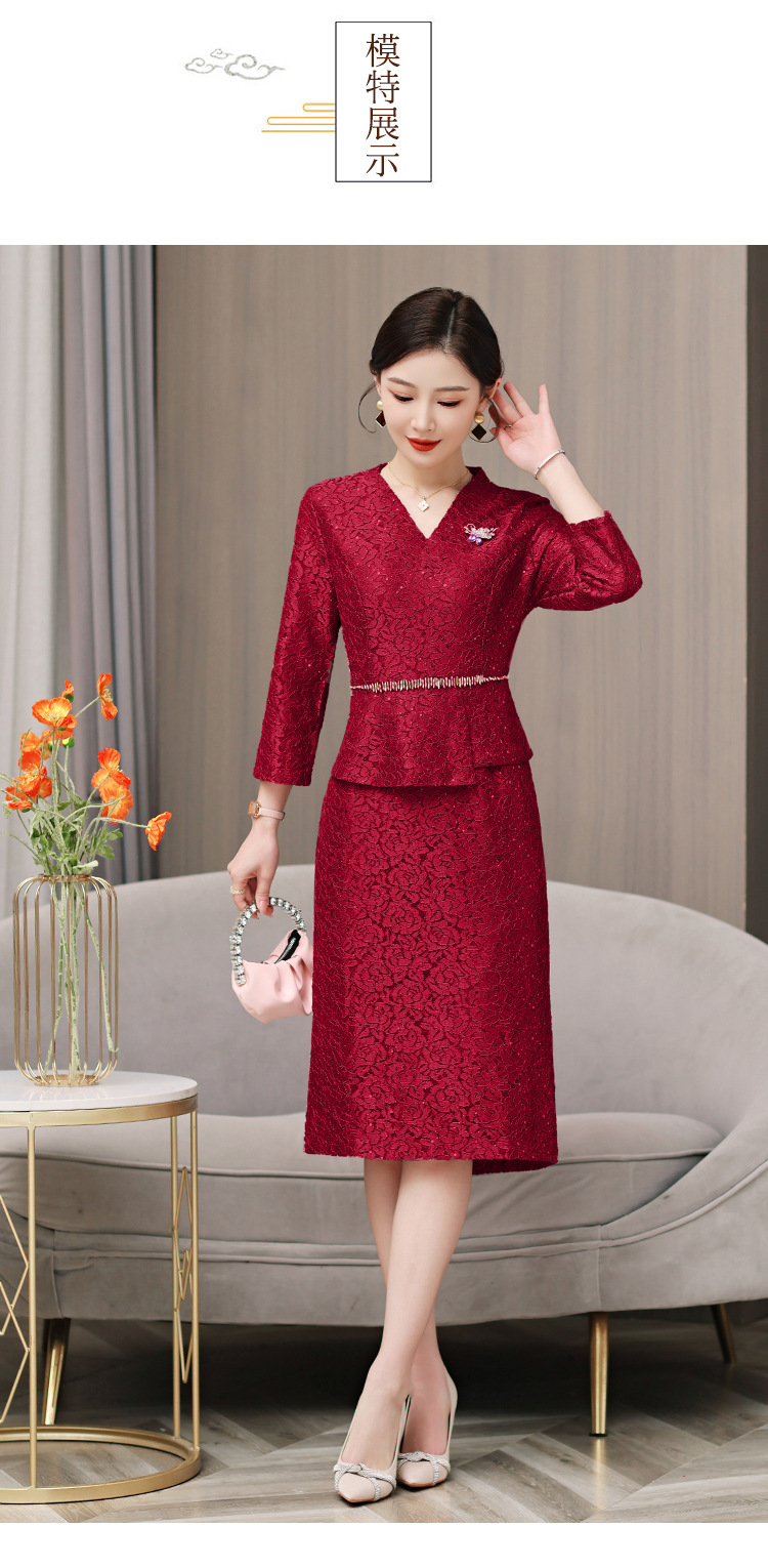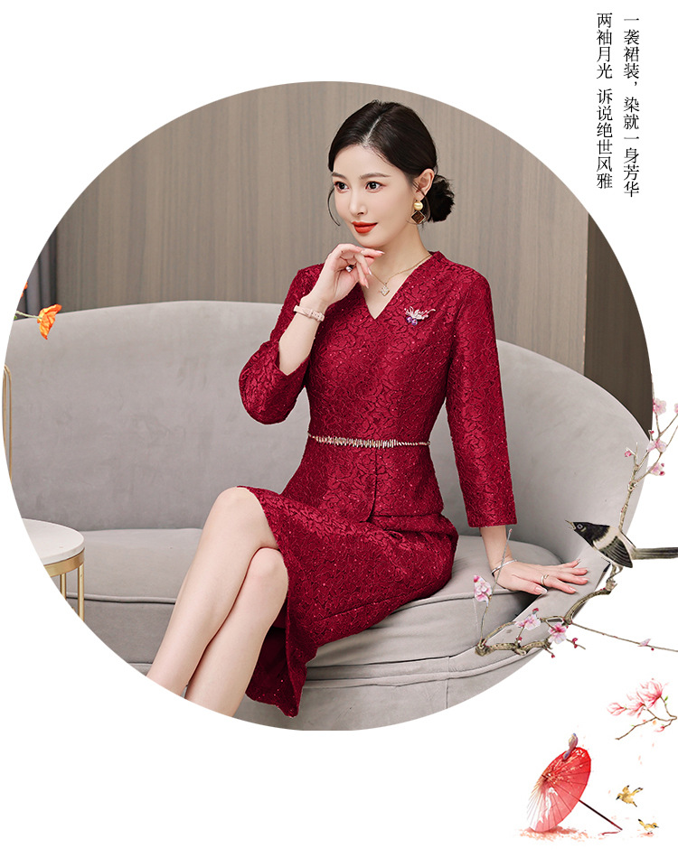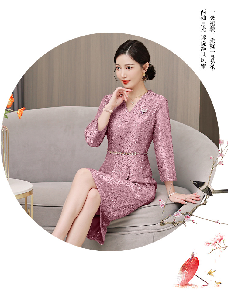 qwfs7756喜婆婆婚宴装礼服裙2025秋冬新款气质蕾丝系带收腰连衣裙