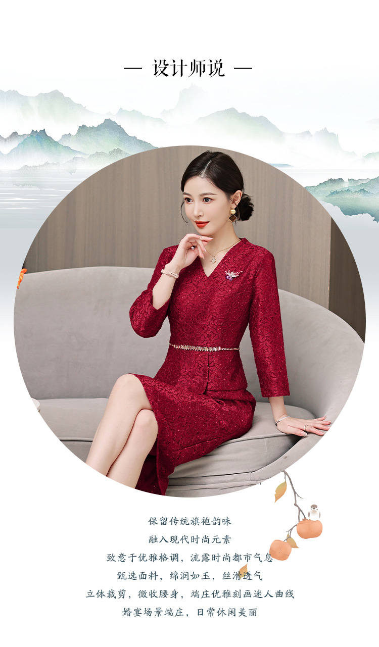 Xxnz6593新中国式優雅喜姑結婚披露宴装チャイナドレス2025新型気質母ワンピース