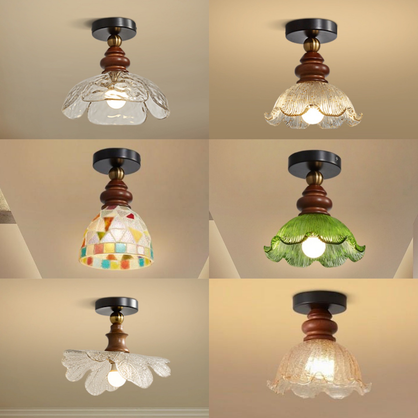 迪格雅新中式中古过道玄关阳台实木吸顶灯日式复古玻璃床头小吊灯