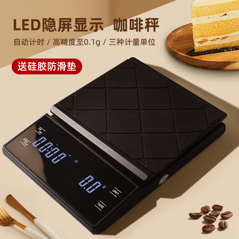 アマゾンの手でコーヒーを流すタッチパネルの小型コーヒー秤