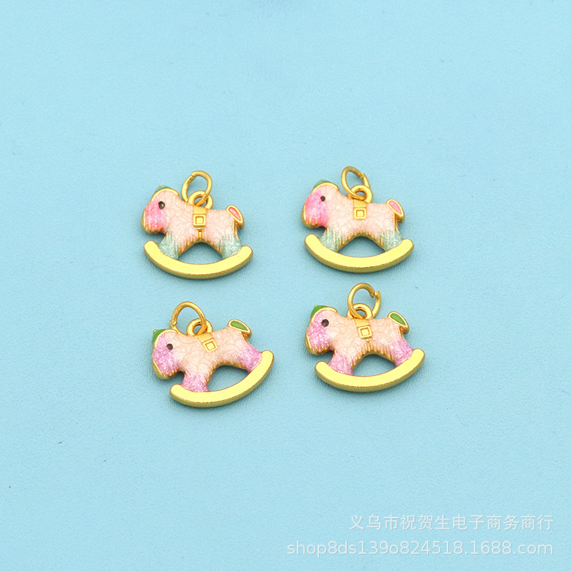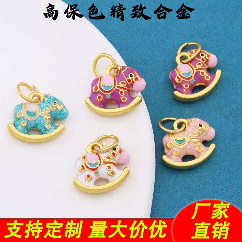 金店同款沙金diy配件马卡龙色摇摇木马吊坠彩色小跑环项链锁骨链