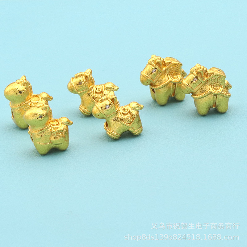 强保色沙金新款马年diy小马吊坠手链项链串珠宝宝男女挂件饰品