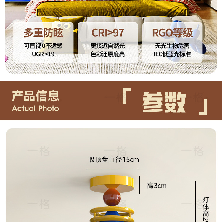 孟菲斯儿童房吸顶灯男孩2025新款创意飞碟房间灯多巴胺儿童卧室灯