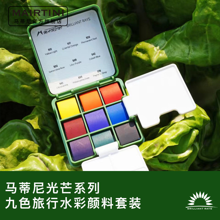 マティーニ9色水彩旅行セットミニ携帯旅行ケース国色風専門透明固体画絵の具