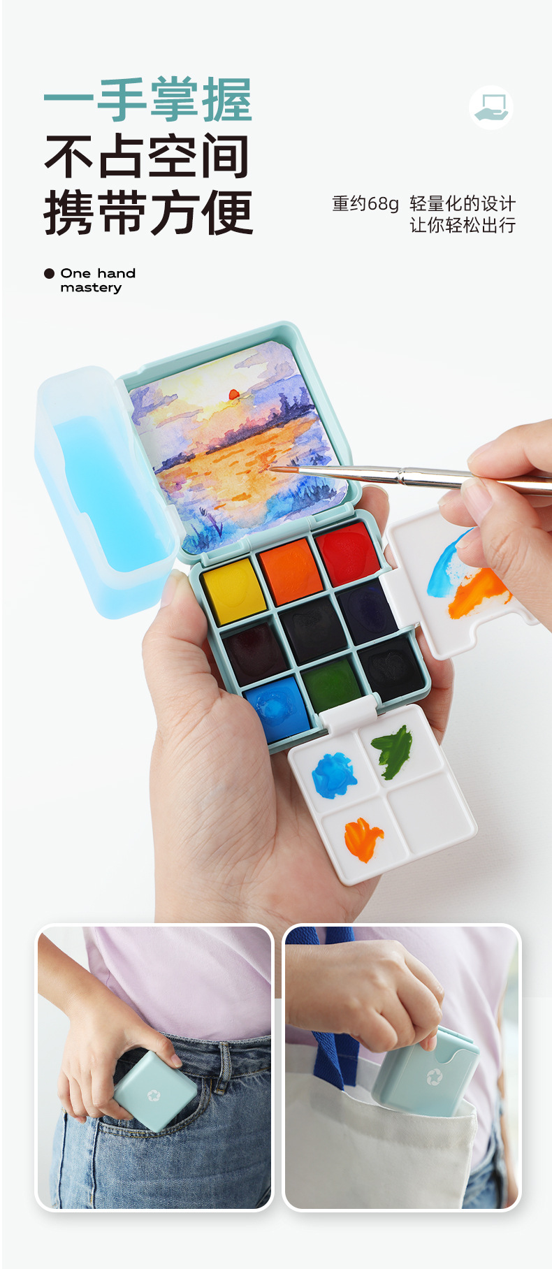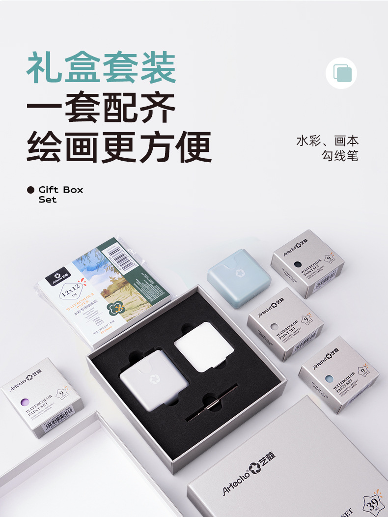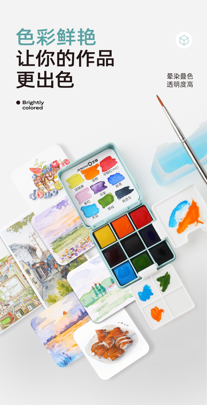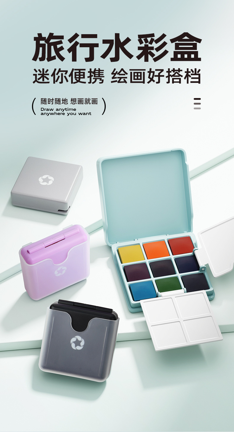 艺寇迷你随身绘画美术调色盘套装小方盒便携旅行固体水彩颜料套装