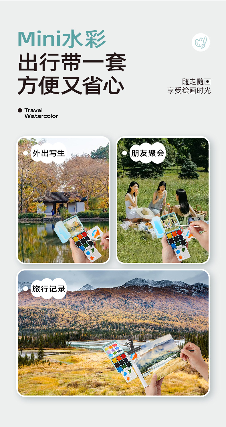 旅行便携户外写生手账本调色画板套装迷你水彩颜料盒摸鱼集绘画本