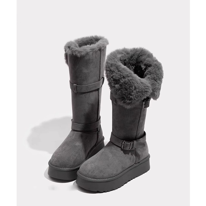 葡萄妈同款初雪前夜~两穿扣带厚底毛毛翻边中筒雪地靴女冬季